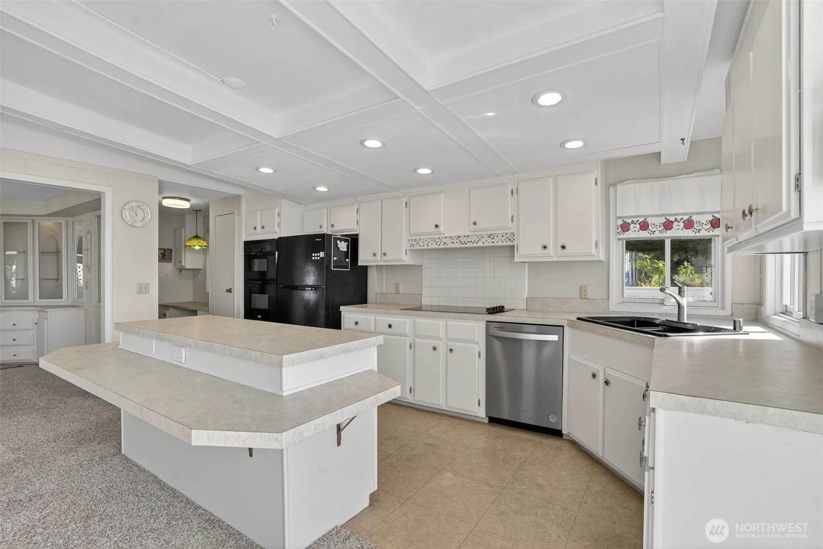 Well maintained 3 bedroom 2 bath home in an over 55+ community. Very spacious remodeled kitchen with tons of cabinets, island and eat bar, open to family room with fireplace. Vaulted with tons of windows for light. Sliders to deck with nice view of city lights. Formal dining and living room. Primary has walk in closet and shower. All appliances stay. Covered patio. Deep carport with Shop and storage shed for all your projects! Space rent includes water and sewer—and opens the door to an active lifestyle with a clubhouse, pool tables, exercise room, library, and ongoing community events.