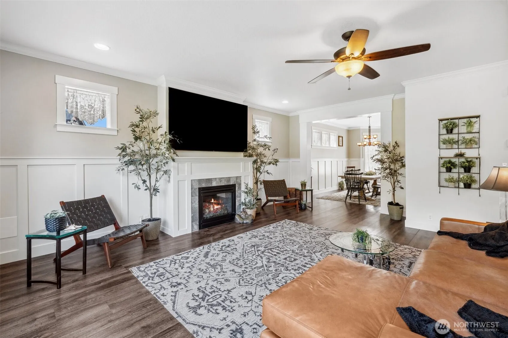 This custom, highly upgraded home blends suburban peace with city convenience—just 22 minutes from downtown Vancouver. Set on a premium greenbelt lot with no-maintenance eco-friendly views, it features a spacious side yard, extended front porch, and elegant interior finishes including quartz countertops, custom cabinetry, LVP flooring, and a large gas fireplace. The flexible floorplan offers three bedrooms plus a media room with Sony theater system, formal dining and living spaces, and a luxurious primary suite with soaking tub and walk-in closet. Community perks include a clubhouse, pool, gym, and more—all close to Woodland’s shops and freeways.
