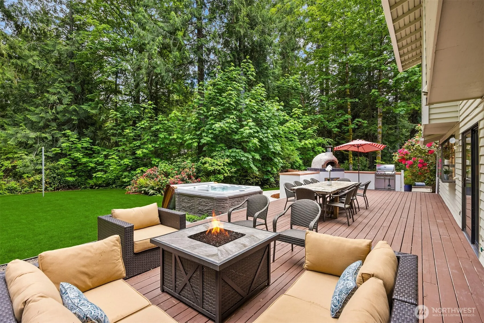 Tucked into a spacious & private 1+ acre lot in one of the island’s most desirable neighborhoods, this freshly updated 3 bedroom home offers comfort, style, elbow room, and peace & quiet. Updates are found throughout including new exterior & interior paint, new carpets, & new light fixtures, to name just a few. Cozy living room w/ wood burning fireplace, 2 dining areas, & kitchen open to adjoining den. Primary suite w/ walk-in closet w/ organizers + 2 more bedrooms & full bath are up. Entertain in one of the most amazing backyards available at any price on the expansive deck w/ built-in pizza oven, BBQ, & hot tub. Large lawns, 2 sheds, playset, & tournament quality Bocce Ball court! Minutes to Lynwood Center, walk into Gazzam Lake trails.
