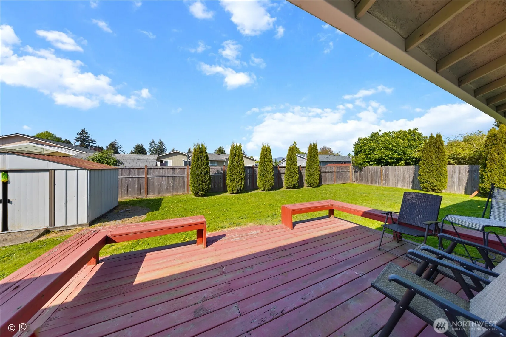 Nicely updated Burlington rambler w/ 3 BR, 1 3/4 baths, shy 1400 sq ft. Kitchen w/ newer appliances, tile countertops, tile backsplash, walk-in pantry, eating bar. Kitchen opens to family room w/ slider to deck & fully fenced backyard. Adjoining Dining room & Living room. Newer roof & hot water heater within the past 5 years. Attached fully insulated 2 car garage. Electric car charger. Emergency Generator included. Newer air conditioning as well! Great area – near I-5, downtown, restaurants, schools. Make this lovely house your next home!