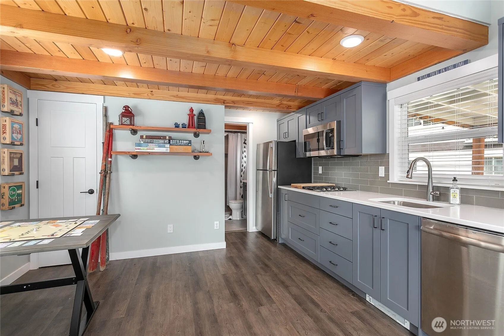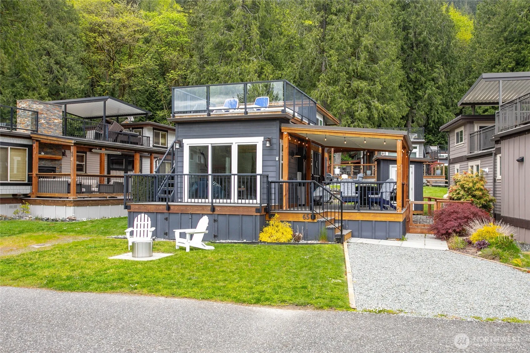 PLAY AT THE LAKE. This thoughtfully designed cottage features incredible views and an open layout and is your hub to play on Lake Whatcom. Enjoy an upper deck perfect for relaxing or entertaining and a two-room loft offering flexible sleeping or storage space. Unobstructed lake views and a quick walk to float or paddle. Located within a gated vacation home community rich with amenities, enjoy direct lake access, a private marina, pool, hot tub, clubhouse, pickle ball, and scenic nature trails. Whether you’re kayaking at sunrise or gathering around the firepit at sunset, this cottage is designed for creating lasting memories together. See you at the lake!