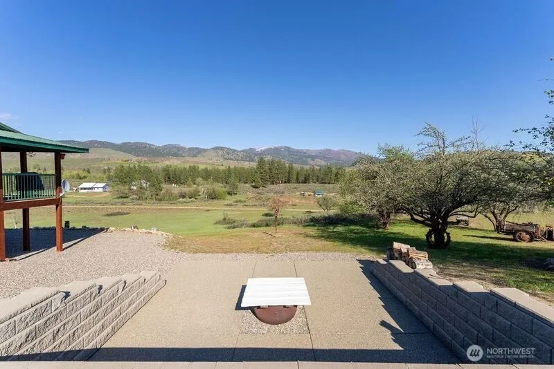 Sun-lit spotless 768 sf cabin is just right, near the Old West Town of Winthrop. 1 story level has 2 Bed/1 Bath. Full Kitchen. Real wood cabinets & includes appliances. Interior shines. Gleaming pine-wood ceilings & white tile floors. Kitchen, dining and living room has Mountain views. Covered decks. Natural landscape with gravel driveway. Heirloom Apple trees. Abundant Wildlife seen here. Small shop outbuilding/storage area. Individual well & installed on-site septic system. Lots of parking for friends and guests. Fun outdoor patio w/ firepit for gathering. Unfinished walk-out Daylight basement is yours to finish as you like. Utility room spacious.(2) Deeded walking easements to River. Take a swim & splash your feet in the Chewuch River!