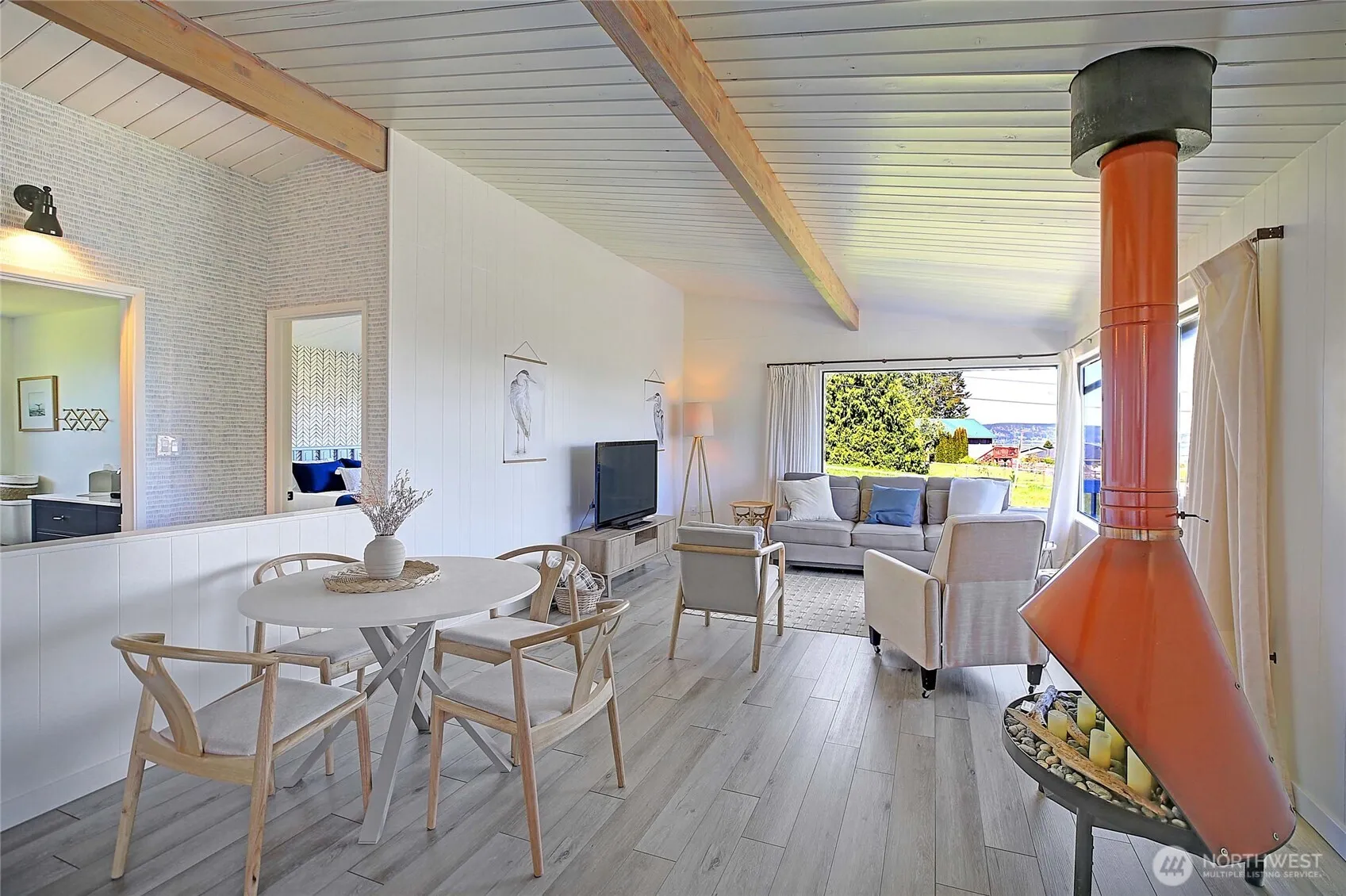Chill island vibes with a splash of MCM and Boho style! This dreamy + PERFECTLY renovated Camano Island escape has MAJESTIC sound and mountain views, vaulted ceilings, an open layout, and tons of light. The kitchen is brand new + HIGH end with island seating and sleek stainless steel professional appliances. Also new: flooring, AC splits, bathroom, paint—and new(er) septic too! Fully furnished and move-in ready, it’s absolutely perfect for Airbnb or weekend escapes from the city, simply an hour away. Enjoy salty breezes from the covered hangout space, big yard, + plenty of parking. Tucked next to a private country club with access to 3 beaches, parks, and a clubhouse—your beachy getaway is calling! Northend location..EZ I-5 access!
