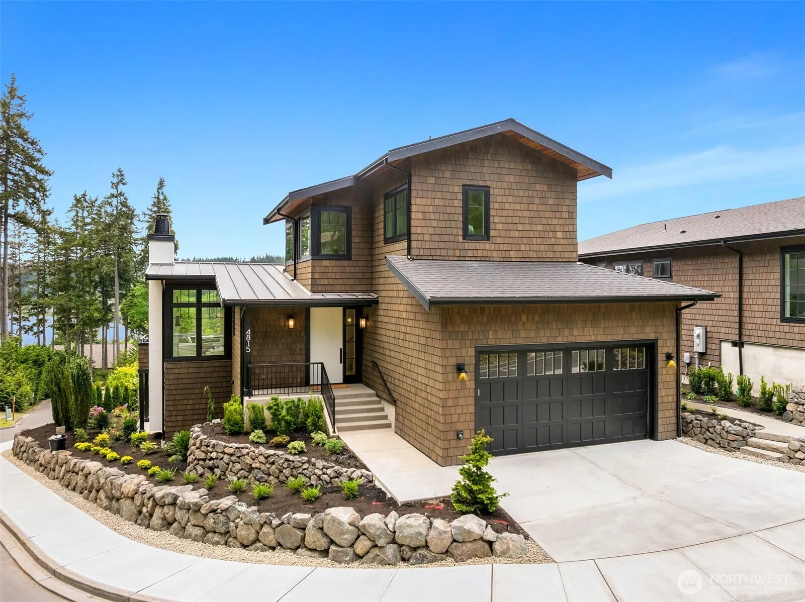 Serene water views through coiffed firs and illuminating sunshine provide the perfect site for this complementary design approach which characterizes the overall community. Blending traditional with modern, the homes’ exteriors are clad in Cedar shingles with large windows. The abundance of windows provides a well-lit interior throughout the year. The ample deck off the main floor living area along with large lower-level patio invites indoor-outdoor living. The interior design features modern rich toned finishes, natural floors and traditional touches. An elevator provides convenient access to all 3 levels. Lynwood Center has become a vibrant hub. Lifestyle options offer nearby shops, restaurants, cafes, movie theatre and beach access.