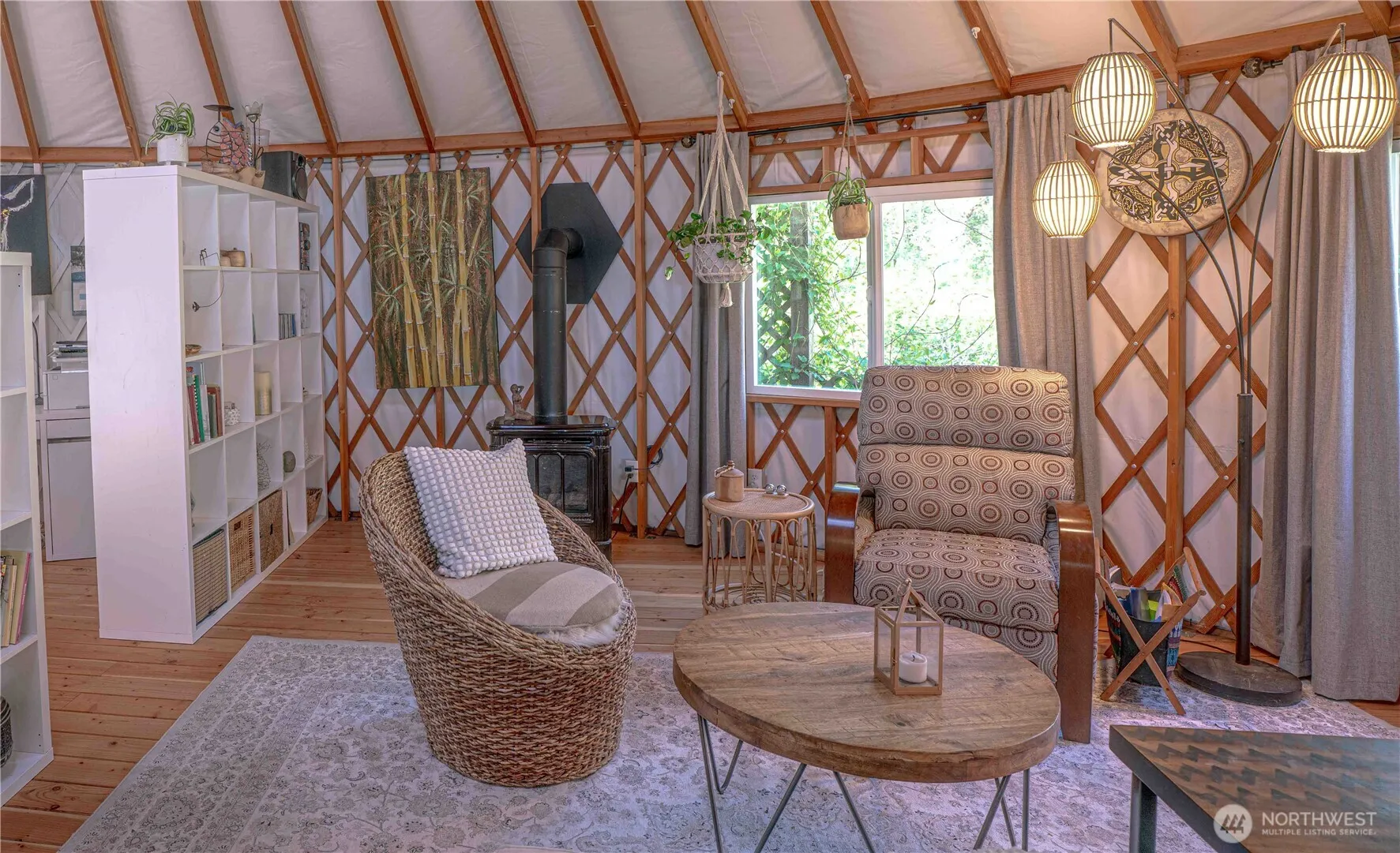 Welcome to this unique and enchanting retreat. Nestled on 4.25 acres of lush, verdant land, this off-grid haven boasts well-established gardens that provide a serene atmosphere and a bounty of fresh produce with a greenhouse to extend the growing season. Two sheds with power offer ample storage and workspace for gardening, DIY projects, or hobbies. A composting toilet provides a sustainable and eco-friendly solution for waste management while the rainwater catchment system makes use of the bounty that this area provides. The crowning jewel of the property is a gorgeous yurt, providing a cozy and spacious retreat with plenty of room for relaxation, and creativity. The property is very private without a neighbor it sight! Welcome home!