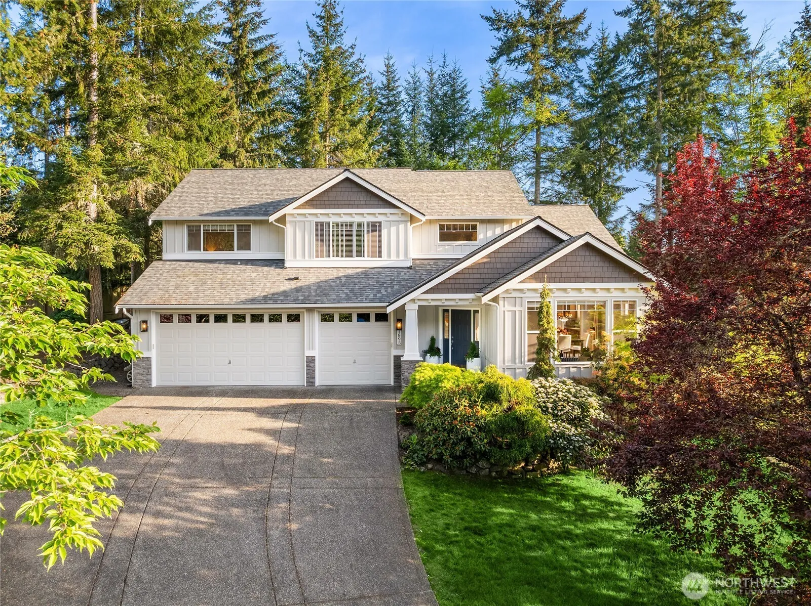Price Improvement! Great location in the heart of town, close to schools, restaurants, parks and Seattle ferry. Charming home with 5 bedrooms including a main floor primary bed and bath suite. Recently repainted interior and exterior, this home is move in ready. Located in an established neighborhood, down a quiet cul-de-sac with mature evergreens and flowering trees. Relax in the private back yard with deck and patio. Vaulted ceilings and large windows bring in abundant light. Work from home with a main floor office. Newly refinished hard wood floors and 3 bay garage for plenty of storage space. Wired with high speed fiber optic, easy to work from home! 2nd main floor bedroom could also be a great office space.