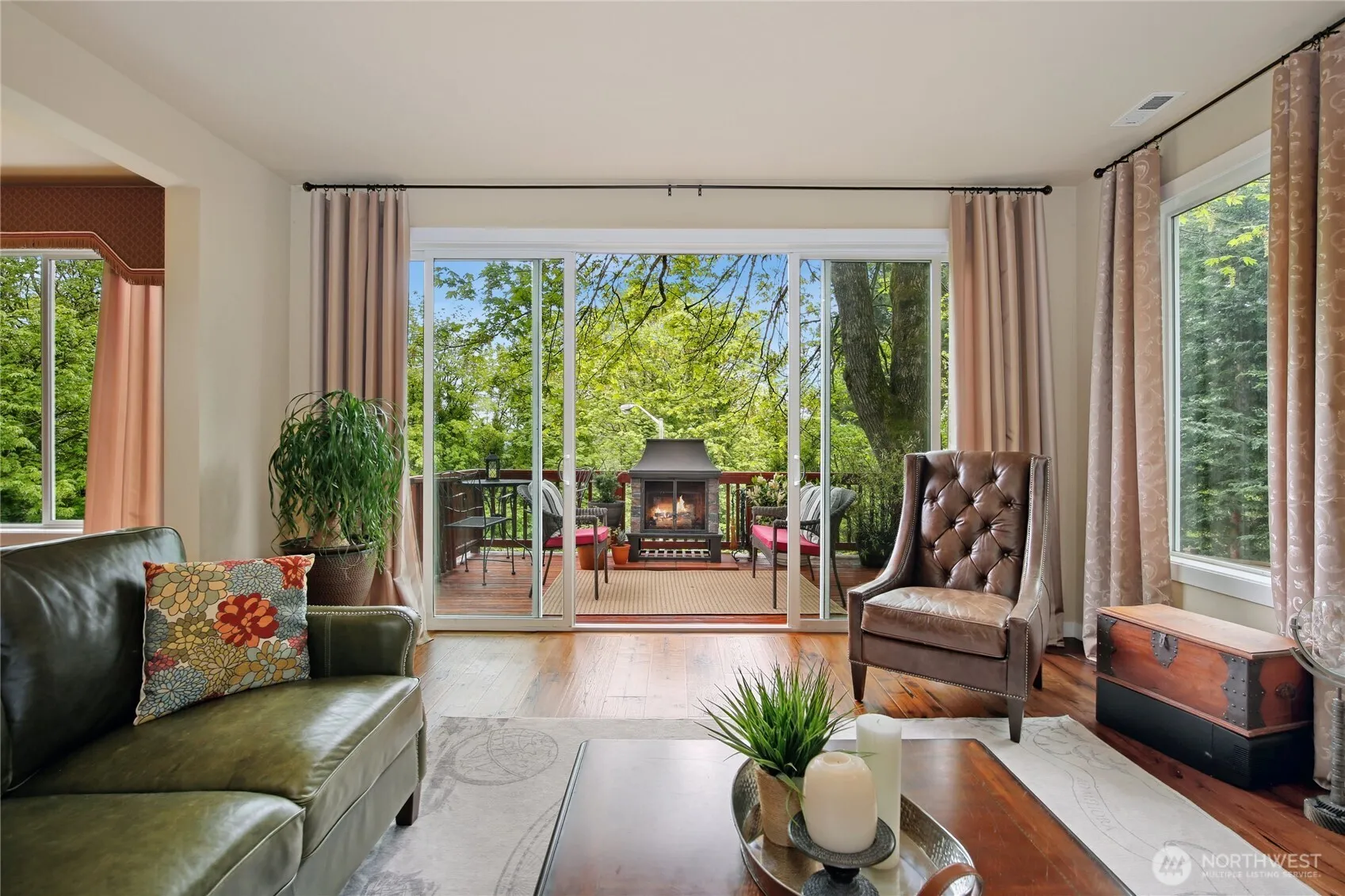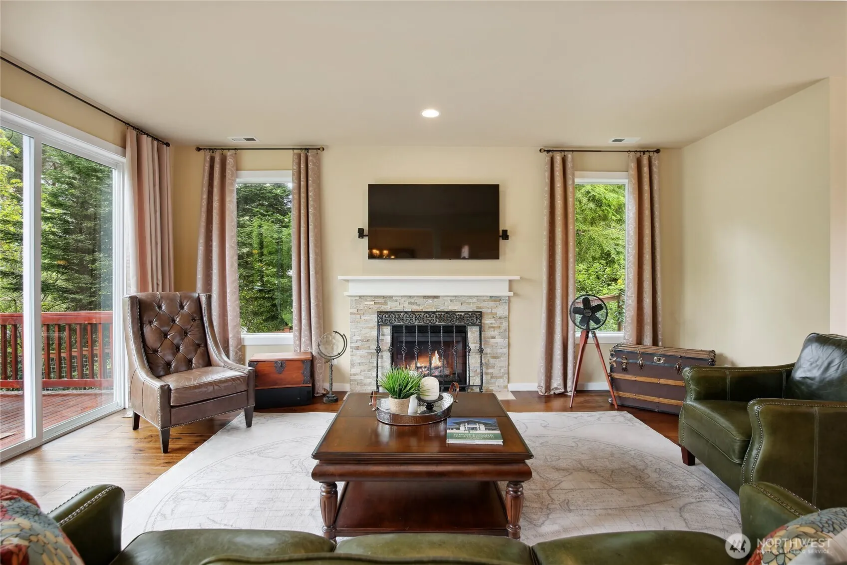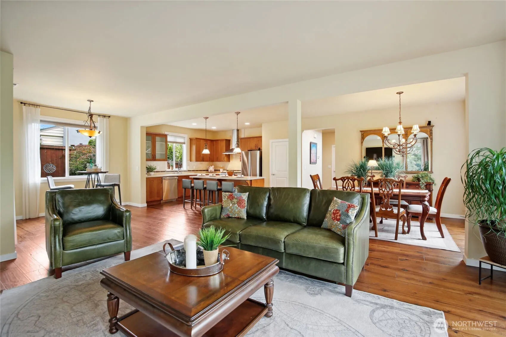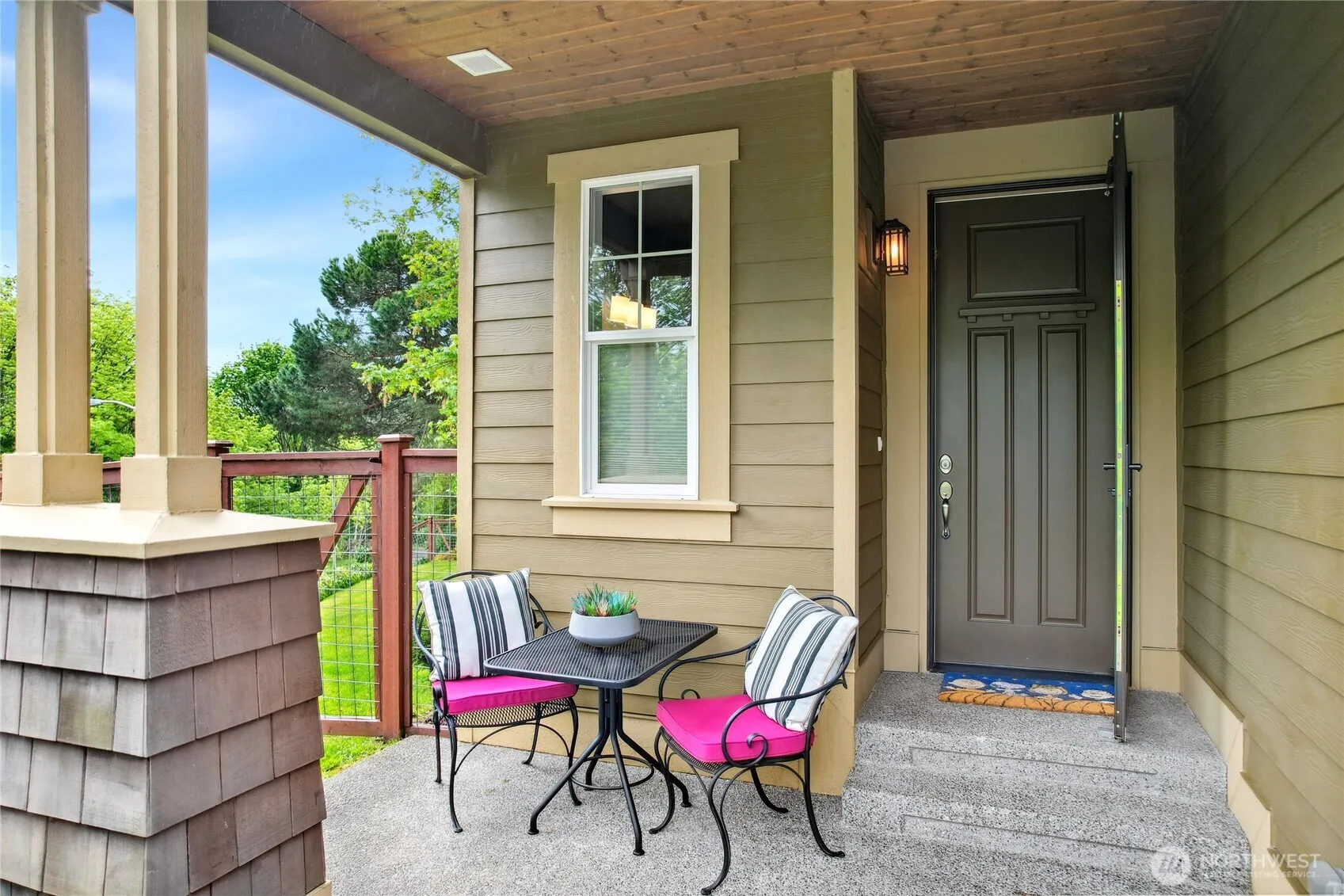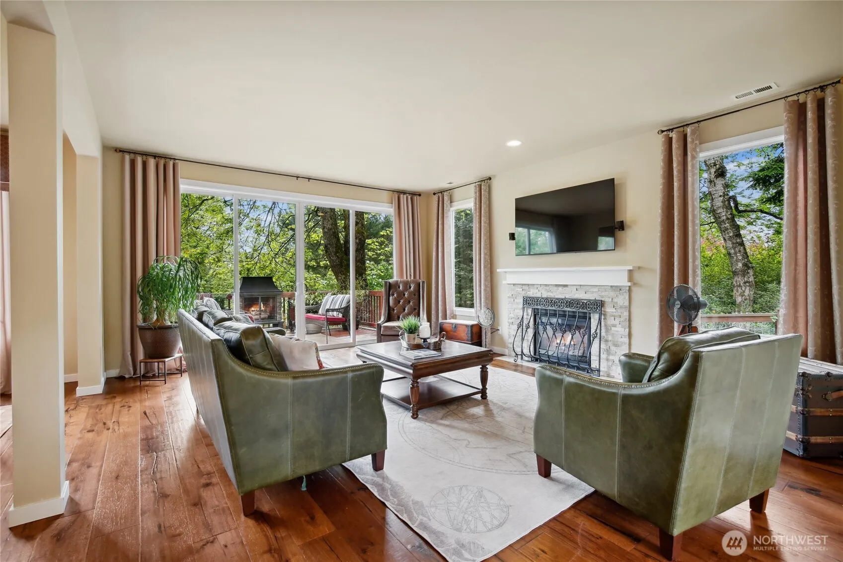 Beautiful NW contemporary on a serene, private lot with sunlight-filled open living, kitchen, and dining spaces, cozy fireplace, and access to a large deck—perfect for entertaining. Main level includes a ¾ bath and office. Upstairs features 4 bedrooms, a bonus room, laundry, and a luxe primary suite with dual vanities, soaking tub, separate shower, and walk-in closet. Lot extends across the street for extra privacy. Prime location near I-5, 405, parks, shopping, and Sea-Tac Airport. Stylish, spacious, and perfectly situated!