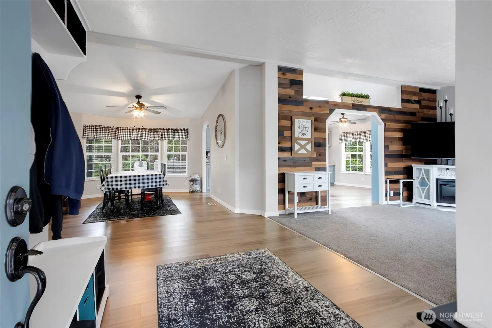 Where nature meets comfort! This charming 3-bedroom home sits beneath a majestic cedar tree with stunning Mt. Rainier views and visits from deer, elk, and soaring eagles. Enjoy peaceful mornings in serene privacy. Inside, you’ll find comfort and functionality throughout. Plush carpeting, ceiling fans, and wood barn planks on the walls add warmth and character. The kitchen is ready to be filled with delightful conversation and savory scents and includes a pantry cabinet and island. Step outside to enjoy a 10×20 shed, black front fence, and second driveway entrance. Upgrades include a new furnace (Jan), blinds on every window, and a newer water filtration system. Feel “away from it all” yet still close to town!