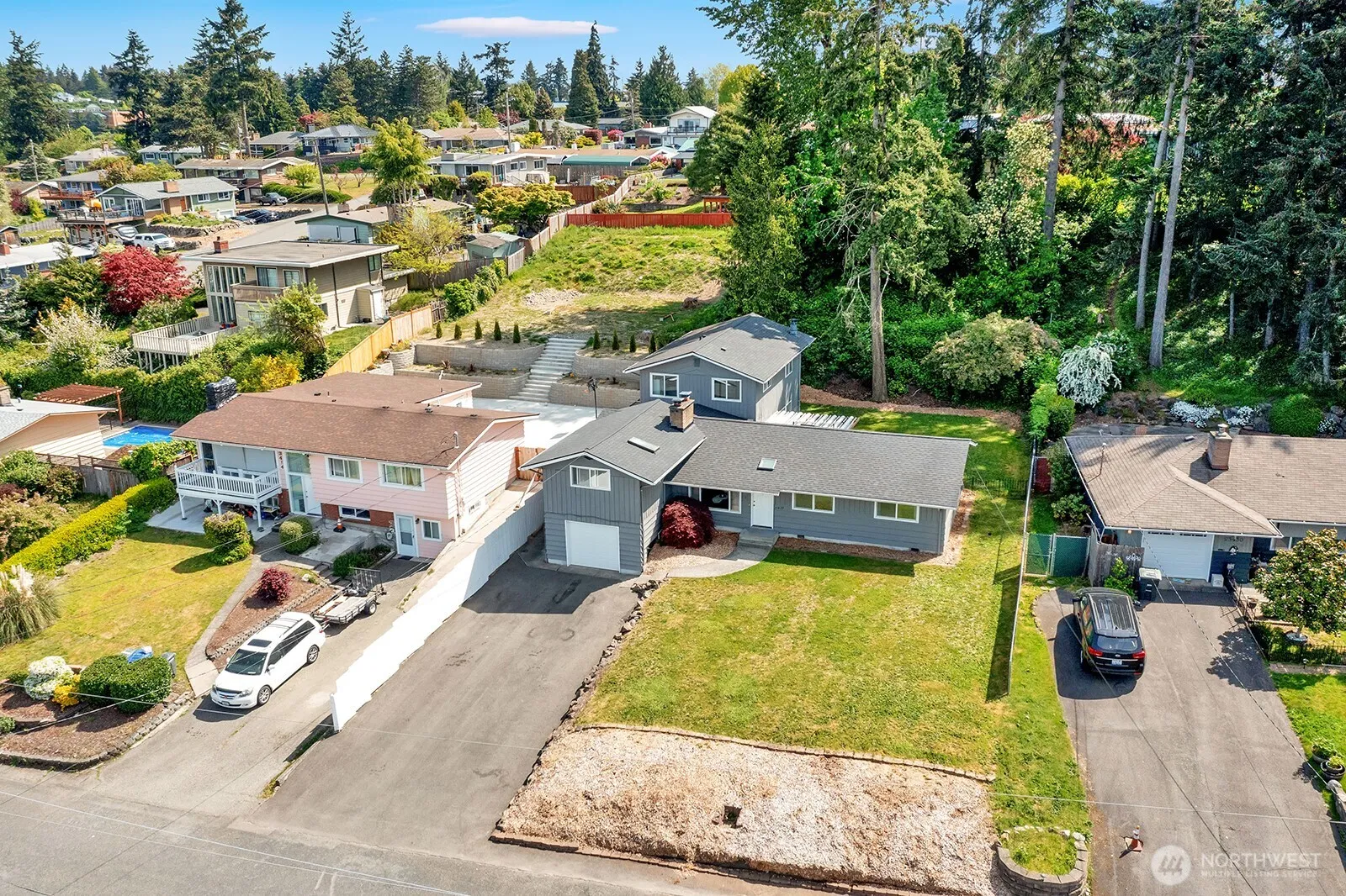 Versatile 7-Bedroom Home with Income Potential! Spacious 7-bedroom, 3-bath home in a quiet neighborhood. Features 5 beds and 2 baths in the main house, plus a separate outside entrance to 2-bed, 1-bath suite with its own kitchen—ideal for extended living, a rental unit, business opportunity or extra cash flow. Plenty of parking, including RV space, and large front/backyards for entertaining. Recent updates include a newer roof, furnace, and hot water tank. Easy access to I-5, shopping, parks, new light rail and Puget Sound. Perfect for residential, rental, or business opportunities!