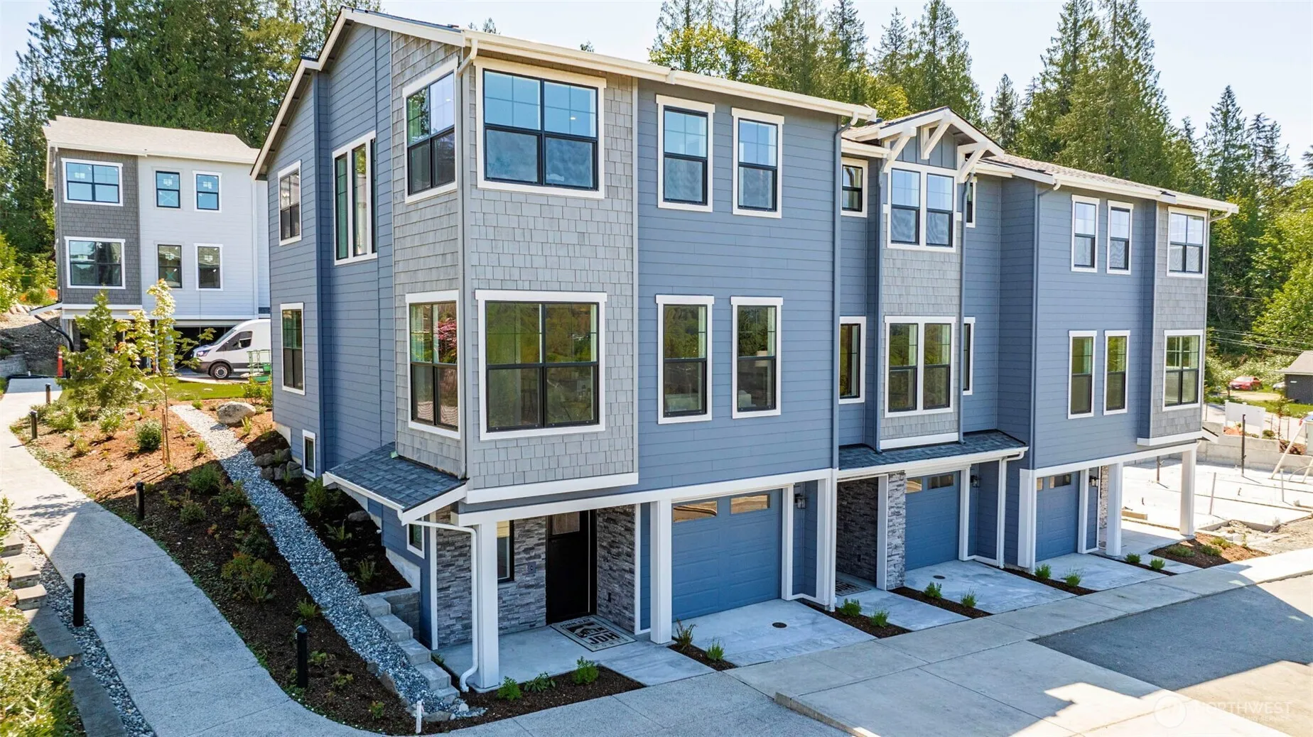 Grand Opening! Sunset Court is a community of 11 luxury townhomes built by John Day Homes. Lot 1 is an end unit with 2167 sq ft with 3 bedrooms, 2.5 baths, open living spaces, kitchen, den & bonus rooms with the latest designer chosen materials & colors. Two car garages and outside patio & yard complete these innovative floorplans. Great Snoqualmie Valley views and plenty of natural light! Sunset Court has its own children’s play area & is just a 10-minute walk to downtown Duvall. Duvall is a thriving small city with numerous businesses, local restaurants, city parks, county library and an active School District. An easy commute to Eastside cities of Redmond, Woodinville, Bothell, Bellevue & beyond. Staged but ready for immediate occupancy.
