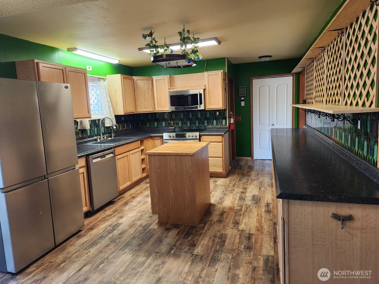 This 4-bedroom, 1 & 1¾ bath, spacious corner lot residence sits on 1/3 acre, offering privacy & convenience. Inside discover an open concept living space, a bonus room for a possible library, craft or playroom, and an updated kitchen with modern appliances & pantry. The house uses a heat pump for heating/cooling with air purification plus wood stove for cozy winters. Enclosed deck with separate enclosed patio allows for year-round comfort outdoors. Tuff shed with loft, tool shed, green house with power, 2 car garage with fresh epoxy floor, RV hookup and additional parking. Just minutes from town, near schools, shopping, Post Office & Hwy 12, this property is a must-see for comfort, space, & access to outdoor activities in a serene setting.