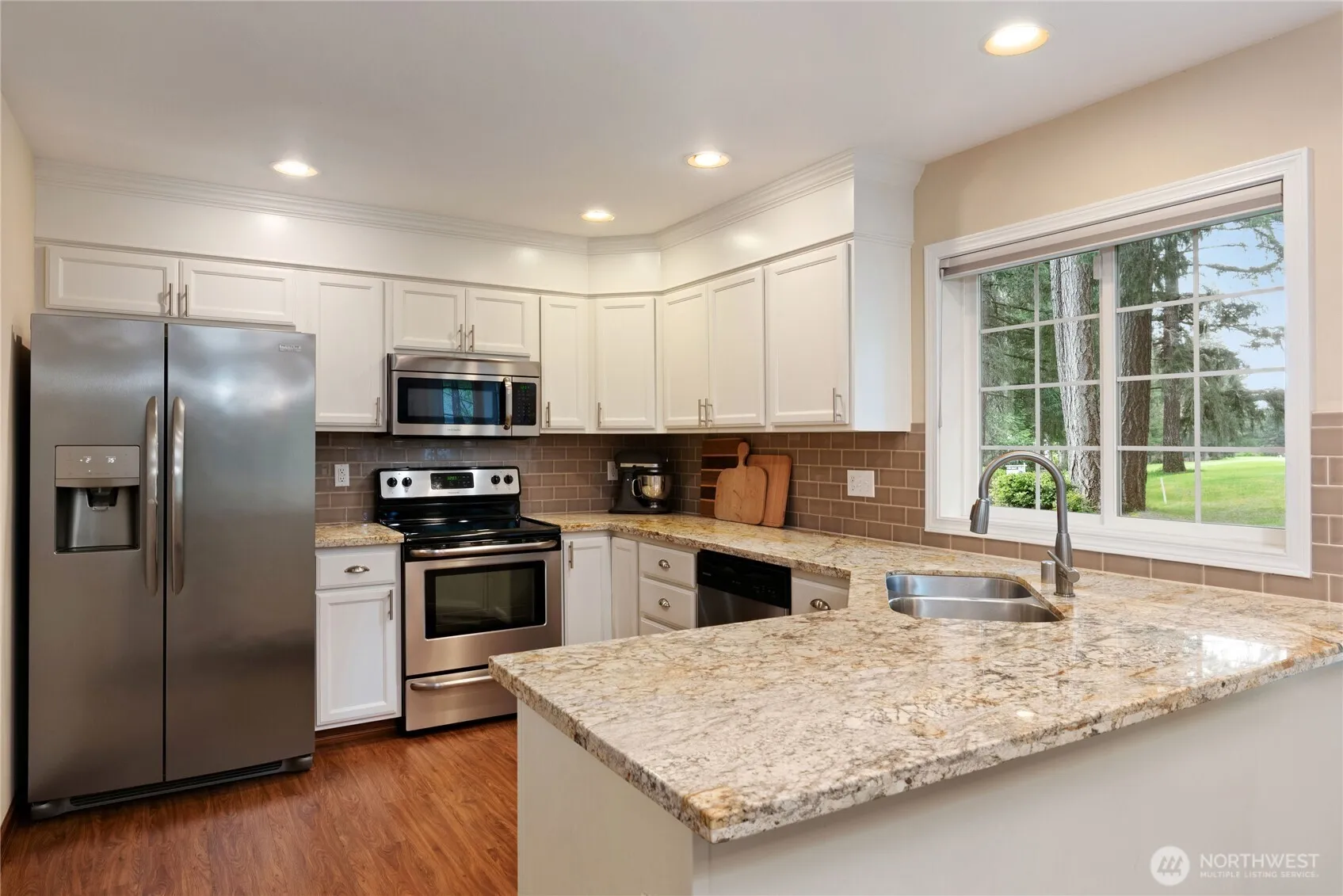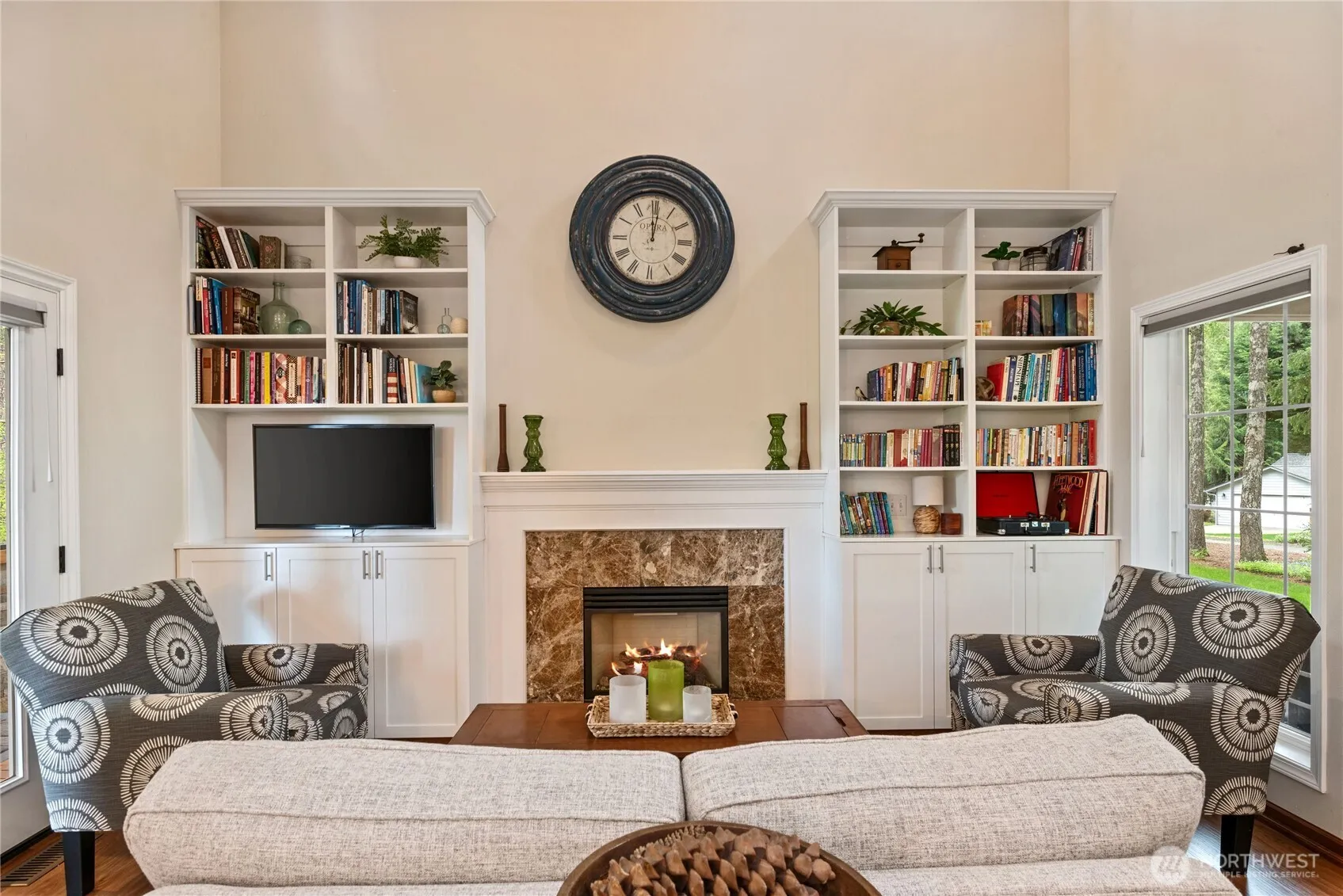 Enjoy sweeping fairway views from this move-in ready Lakeland Village home—perfectly situated directly behind the tee box on Hole 14! This beautifully landscaped backyard features a spacious covered patio ideal for BBQ’n, with gas plumbed to the built-in grill station. Inside, you’ll find an open-concept floor plan with brand new carpet, custom built-ins, and a stylish coffee/wine bar that elevates the living space. The kitchen flows seamlessly into the great room, creating a welcoming atmosphere for guests. Upstairs, spacious bedrooms offer comfort and flexibility, perfect for any lifestyle. The garage features a new epoxy floor, raised storage racks and a 220 outlet ready for your electric vehicle charger.
