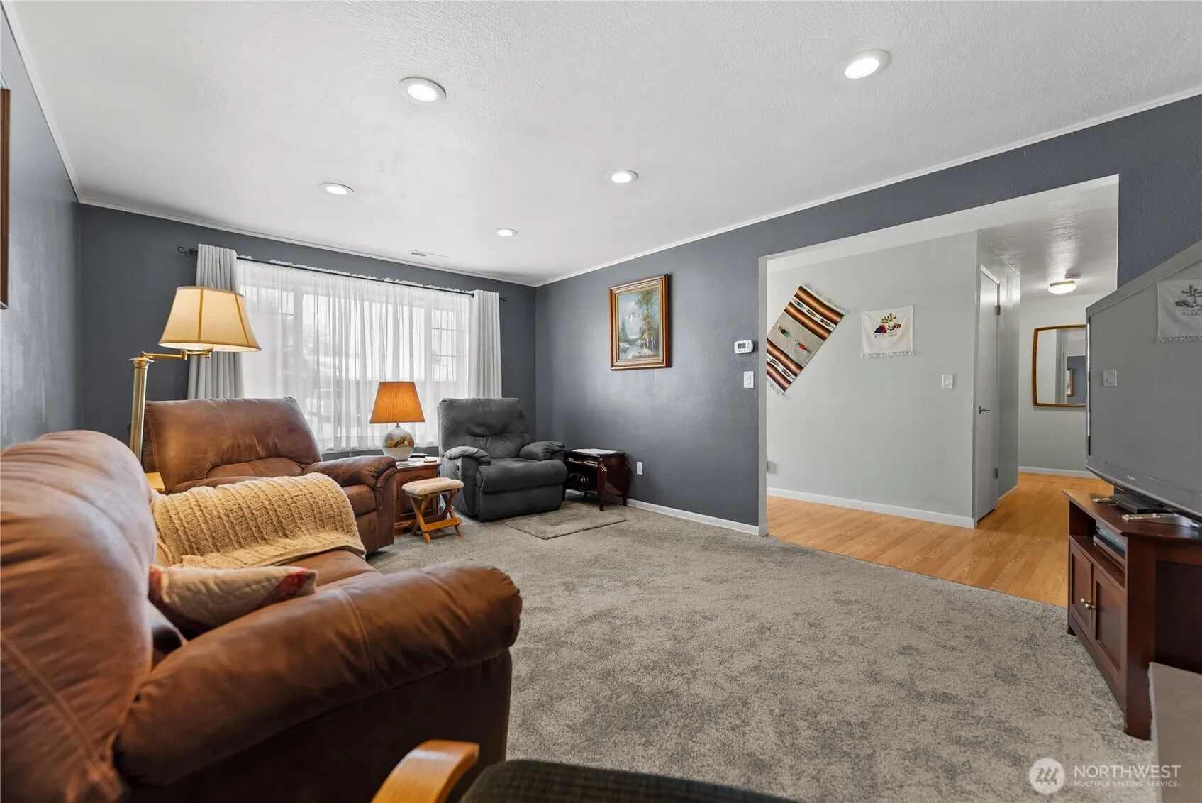 Immaculate, charming 3 bed 2 bath rambler on quiet paved street in one of Omak’s great neighborhoods close to schools, city amenities, and health care. Beautifully landscaped with mature plantings, sprinkler system, fully fenced backyard w/patio. Attractive retaining wall out front provides extra off street parking. Bright and welcoming cozy interior with increased insulation, heat pump, wood fireplace in living room. Dedicated dining room, gleaming kitchen w/newer countertops, adjacent comfy family room. Spacious bedrooms, bright primary bedroom with improved ensuite bath. Garage is fully insulated, enhanced by lots of storage, work space, and new garage door accommodating a separate “man door” entry for convenience! NEW roof as of 6/5/25!