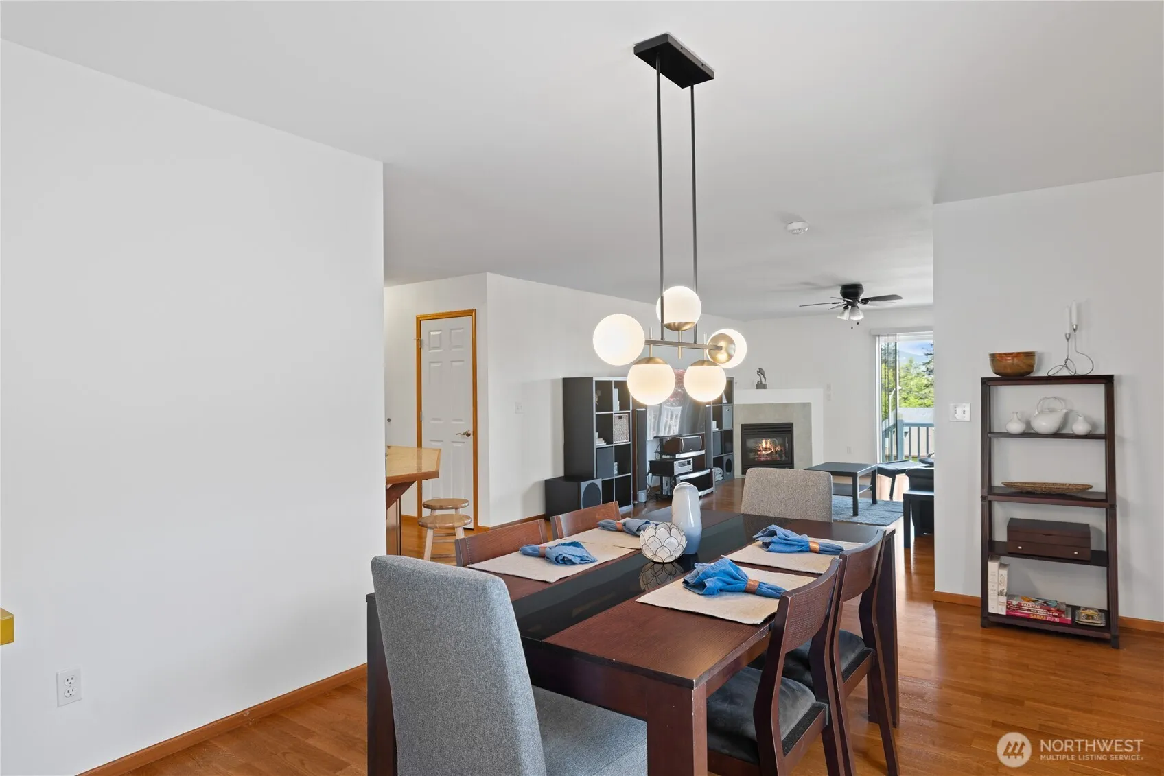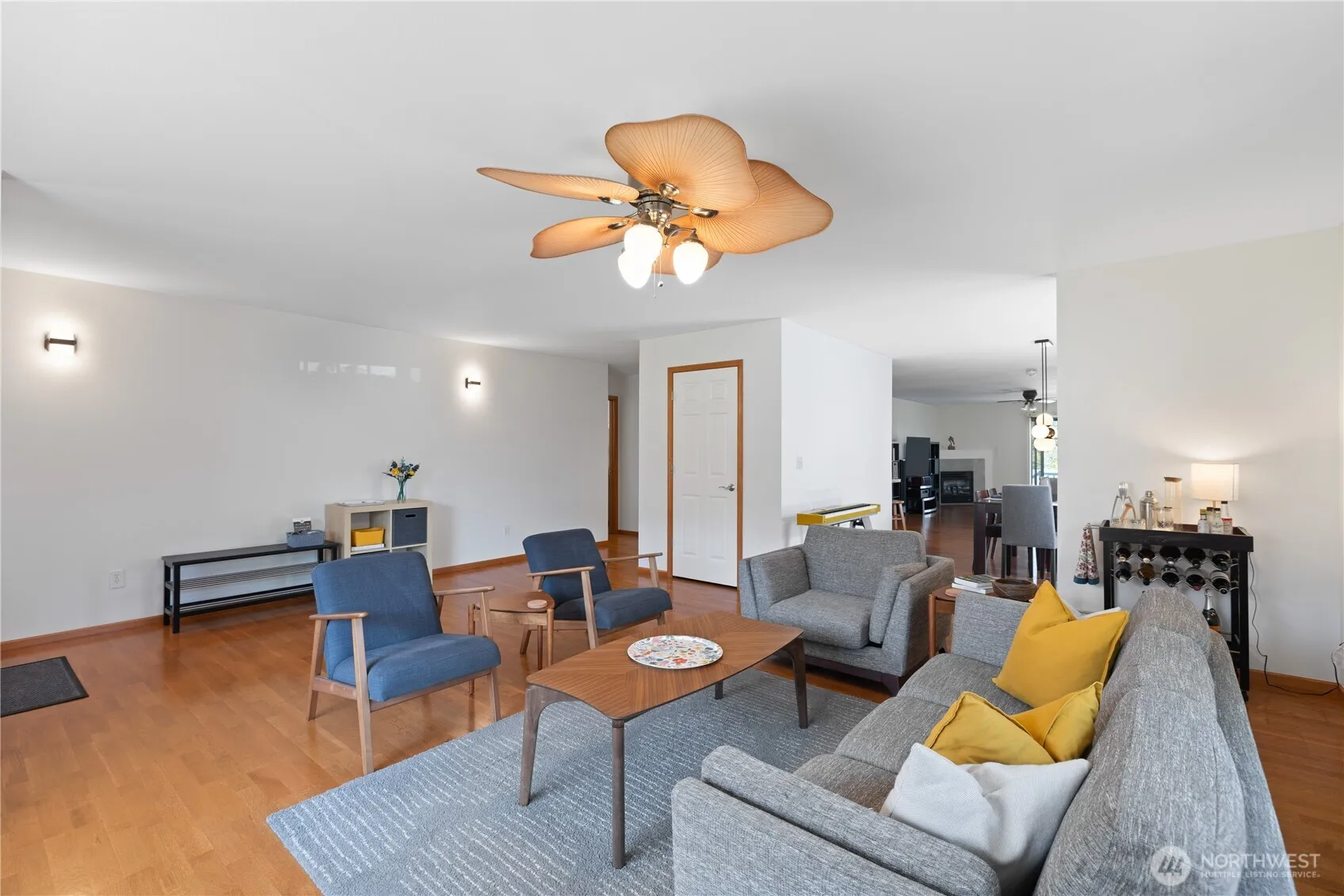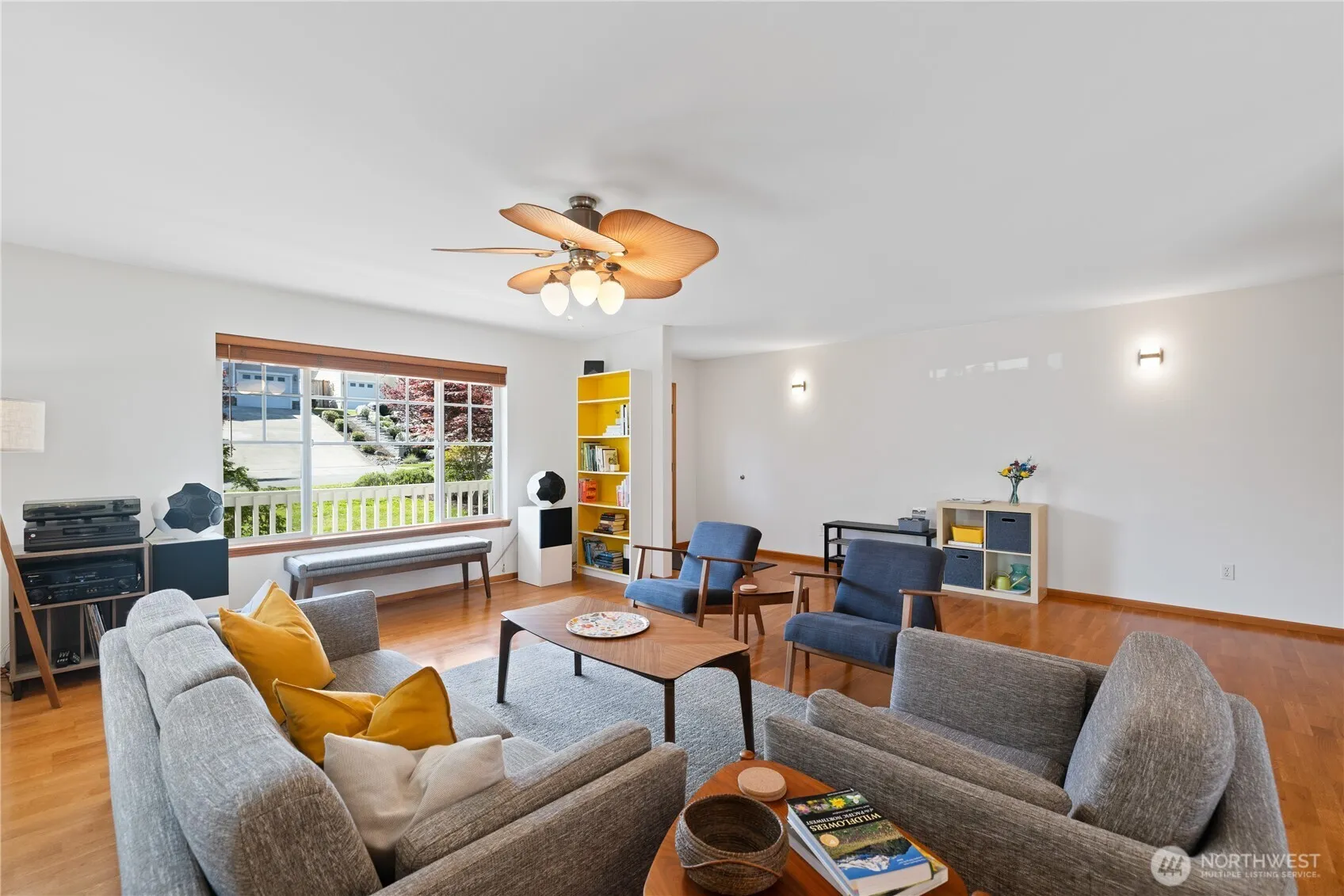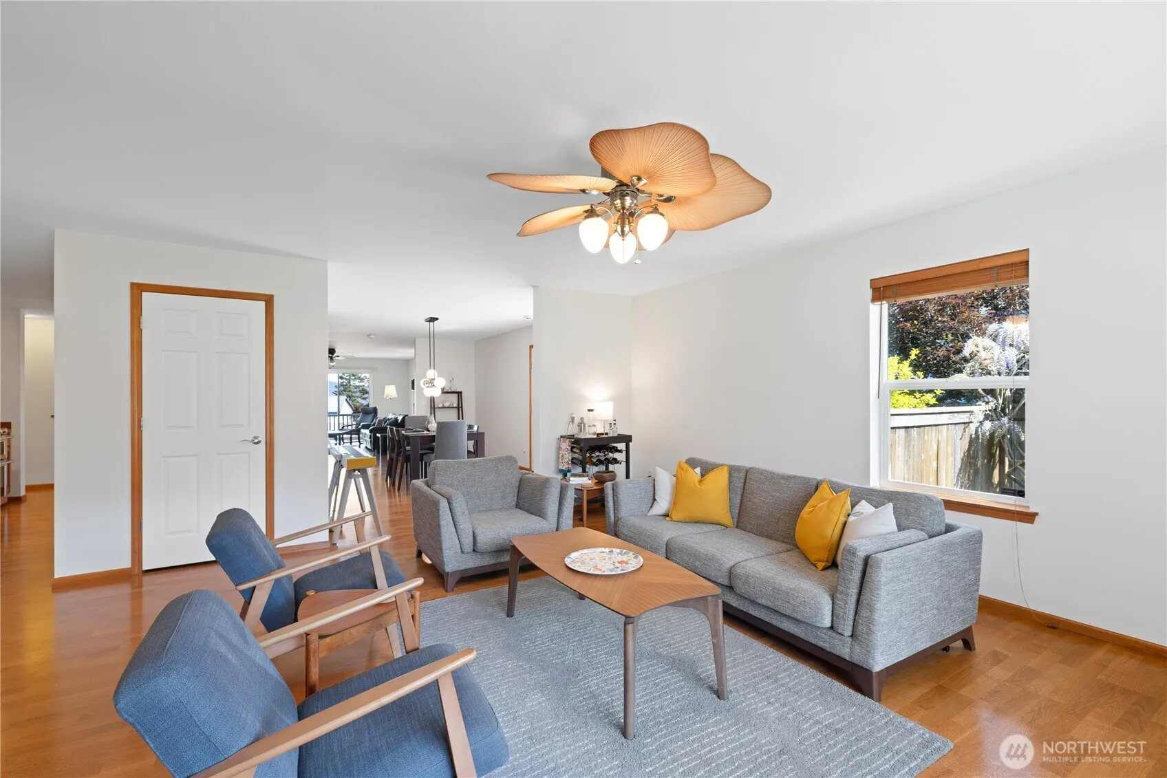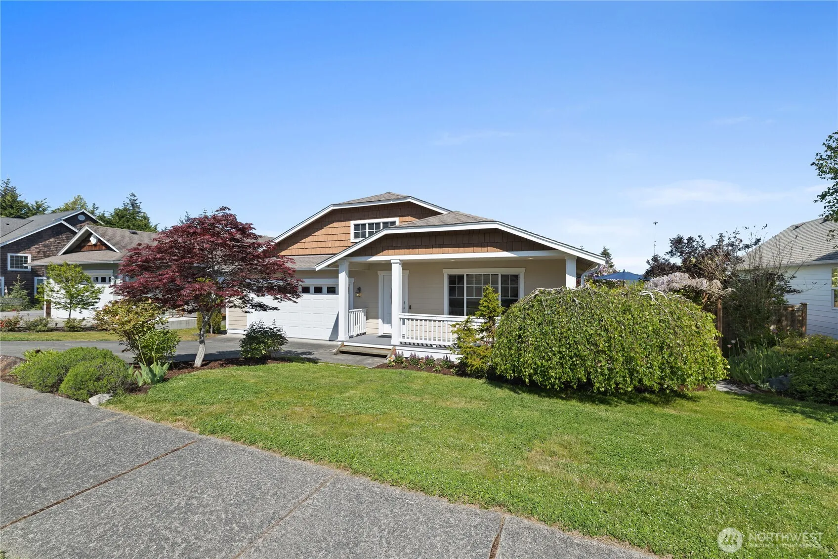 This light-filled home offers an open floor plan with a spacious front living room and hardwood floors throughout. The kitchen includes a breakfast bar and opens to a second living space, creating great flow for daily living or entertaining. French doors in the dining area lead to the back deck for seamless indoor-outdoor living. The primary suite features a walk-in closet and standing shower, while both spare bedrooms also offer walk-in closets. A large two-car garage includes an extra fridge, and the landscaped backyard features a storage shed and deck—perfect for taking in stunning views of Rosario Strait, Guemes and Cypress Islands, and the Bellingham and Guemes Channels.
