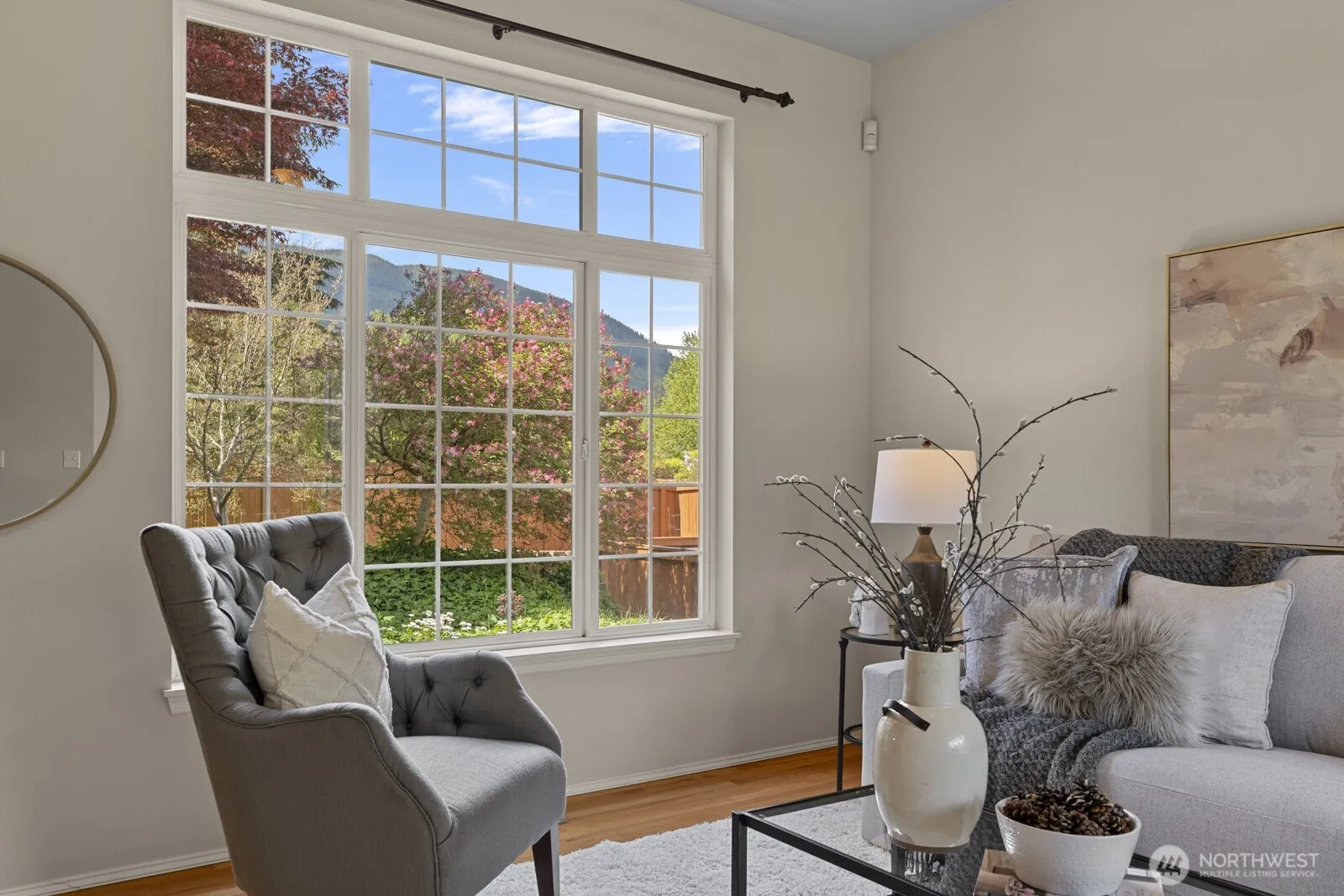 Si View standout! This North Bend view home is a true gem. Sited on a prime lot to maximize Mt Si and Rattlesnake Ridge views. Direct access to the river, park, and trail. Meticulously maintained by the original owner. Impeccable curb appeal. A vaulted entry greets you. Ideal floor plan with 3 beds + office & bonus room. Oak hardwoods, new carpet. Tranquil primary suite with updated bath. Fully-fenced yard is perfect for entertaining! Custom covered and uncovered patio featuring outdoor grilling space. Delightful gardens. Highest original lot premium in the community. Prized Snoqualmie Valley schools. Enjoy nearby shops, dining, parks, schools, and more. Quick access to I-90. Pre-inspected. A must-see!