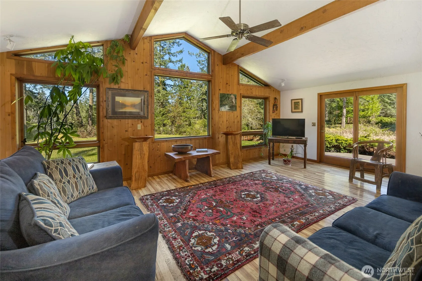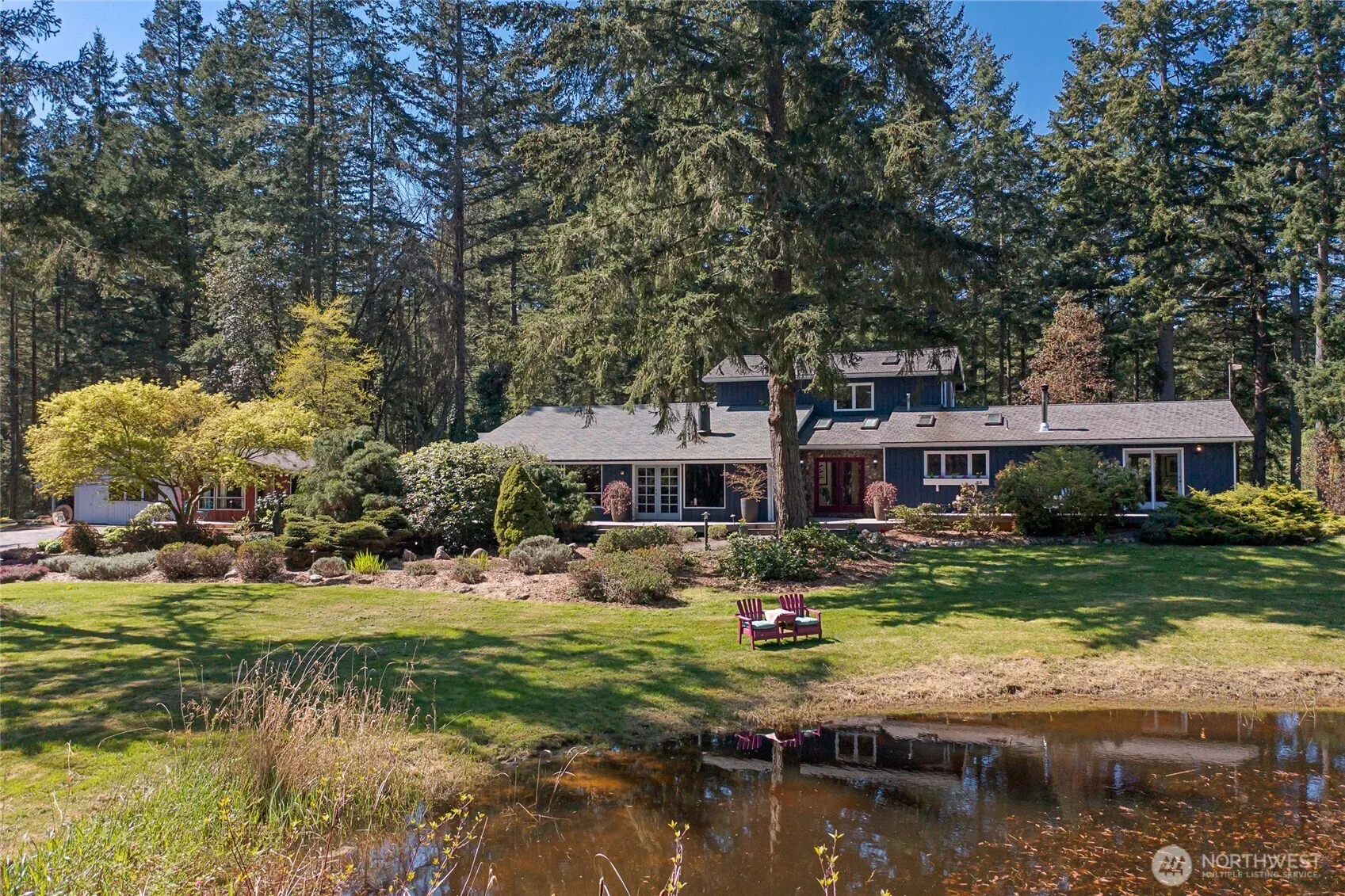 Once a cherished writers’ retreat where several books were written, this magical dividable 18-acre San Juan Island property is a haven of creativity and tranquility. The 3,648 sf home is designed with versatility in mind, offering essentially two complete living spaces—each with its own kitchen, bedroom, bathroom, and living room—ideal for multi-generational living or guest accommodations. A separate 320 sf guest cottage with bath adds even more flexibility. Thoughtful updates include laminate flooring, refreshed bathrooms, newer heating system, expansive decking, and a saltwater hot tub. The grounds are equally magical, with fruit trees, ponds, mature landscaping, a 2 stall horse paddock, an artist’s shop, and a mystical forest to explore.
