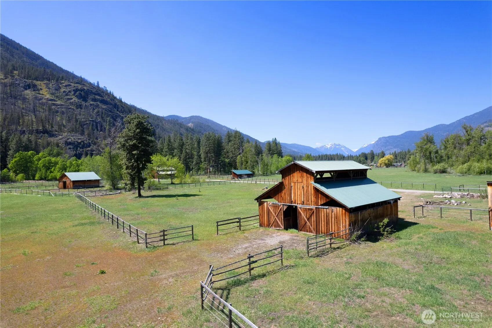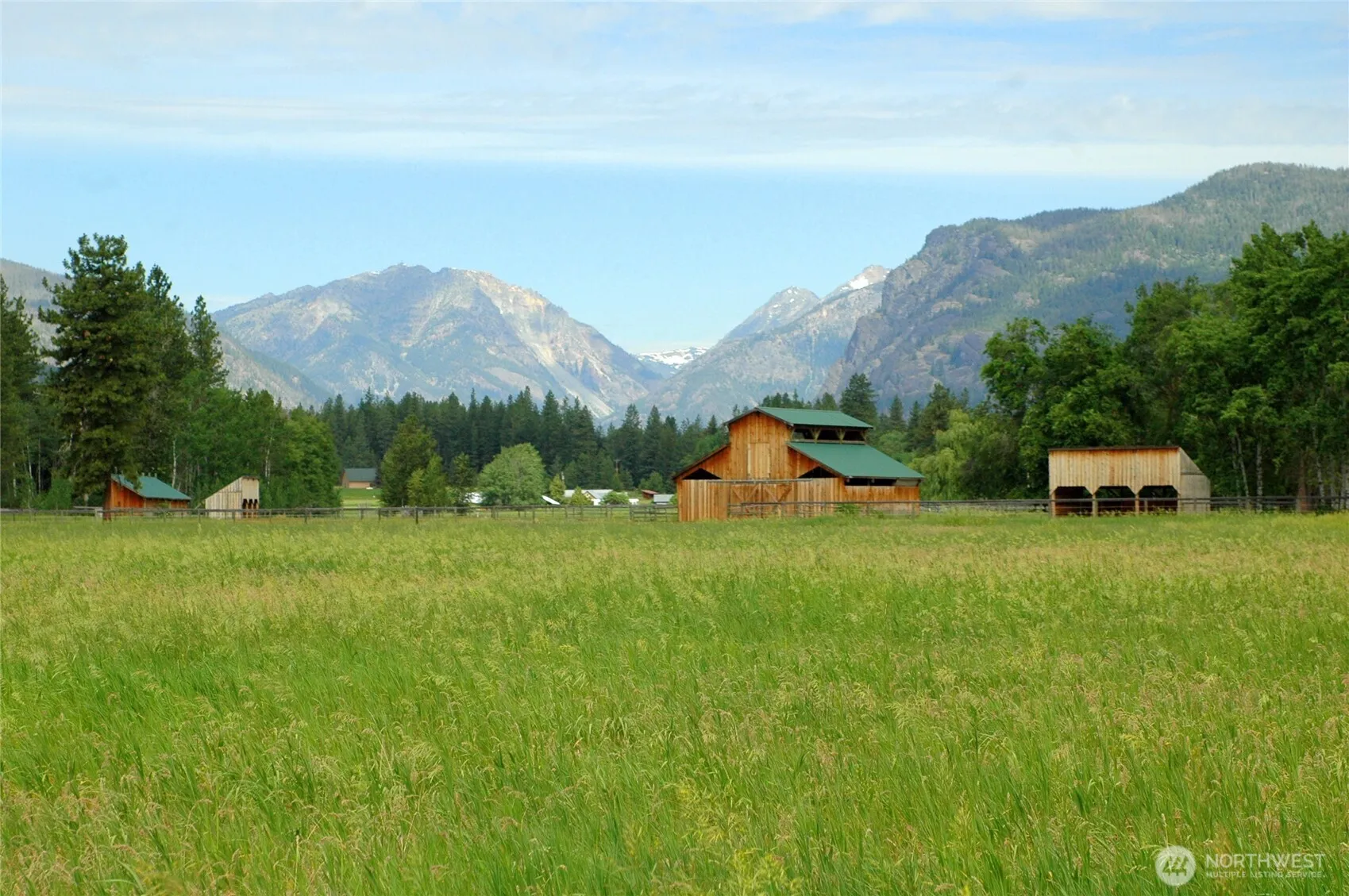 Mazama Legacy Property: This 43.8-acre Methow Valley gem blends residential, agricultural & recreational living. Includes a 2-BD farmhouse, licensed nightly rental, barns, and strong water rights. Direct access to the Methow Community Trail & Forest Service land offers year-round recreation. A Conservation Easement allows two more homes on designated sites, a farmstand, and ag practices. Features fenced meadow, pastures, fruit trees, and National Forest frontage. Huge barn with remodeled studio loft, brand-new 3-BDRM septic, two wells, and sprinklers. Includes 2 Methow Trails passes. A beautiful mix of income, nature, and sustainable living.