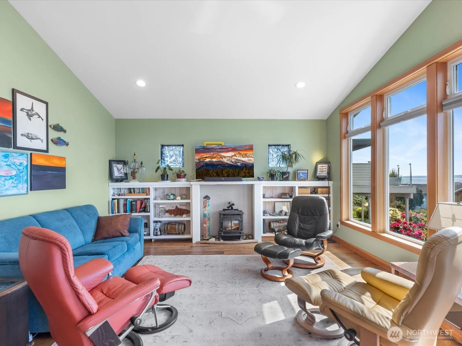 Possession Shores Community living with breathtaking views of the Olympic Mtns and Admiralty Inlet! This wonderful property offers a front row seat to passing ships, vibrant sunsets, flexibility of short-term rental, ideal as a full-time residence or vacation getaway. Main level primary bedroom with en suite full bath plus lower level en suite 3/4 bath. Main and lower levels each have an additional finished room for den/office or sleeping area. Large storage room lower level and more space in garage. Convenient outdoor entertaining areas. Community amenities include boat launch, beach access, and large picnic area. Additional finished sq ft on lower level, Buyer to verify. This is your opportunity to cozy up to Possession!