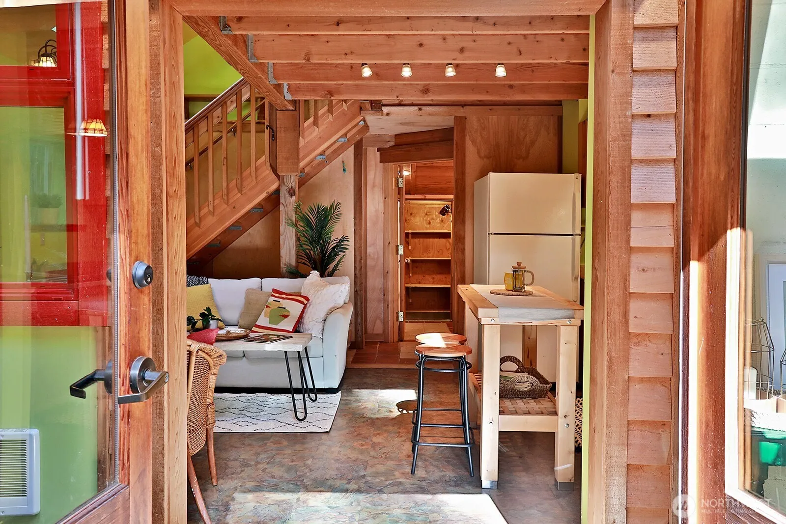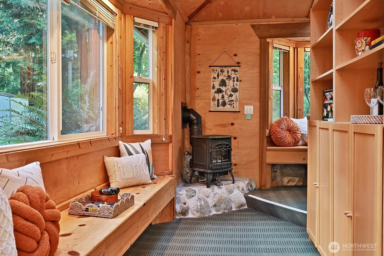 A short stroll from the quaint seaside village of Langley lives a sweet cozy cottage on its own +/- 3.7 acres with big ol’ cedars, firs & maples, and peek-a-boo views of Saratoga Passage from the upper-level deck. With deeded beach access in a private quiet neighborhood, your island sanctuary awaits. A wood stove and freestanding propane stove keep you warm and create an intimate and efficient living space. The loft bedroom has an expansive deck where views of the Sound & Cascades open in the winter months while the gorgeous surrounding forest provides a constant strong connection to nature & beauty. Check out the old artist’s cabin at the edge of the forest ready for a new life. Welcome to “Happily Ever After” on Whidbey. Welcome home!