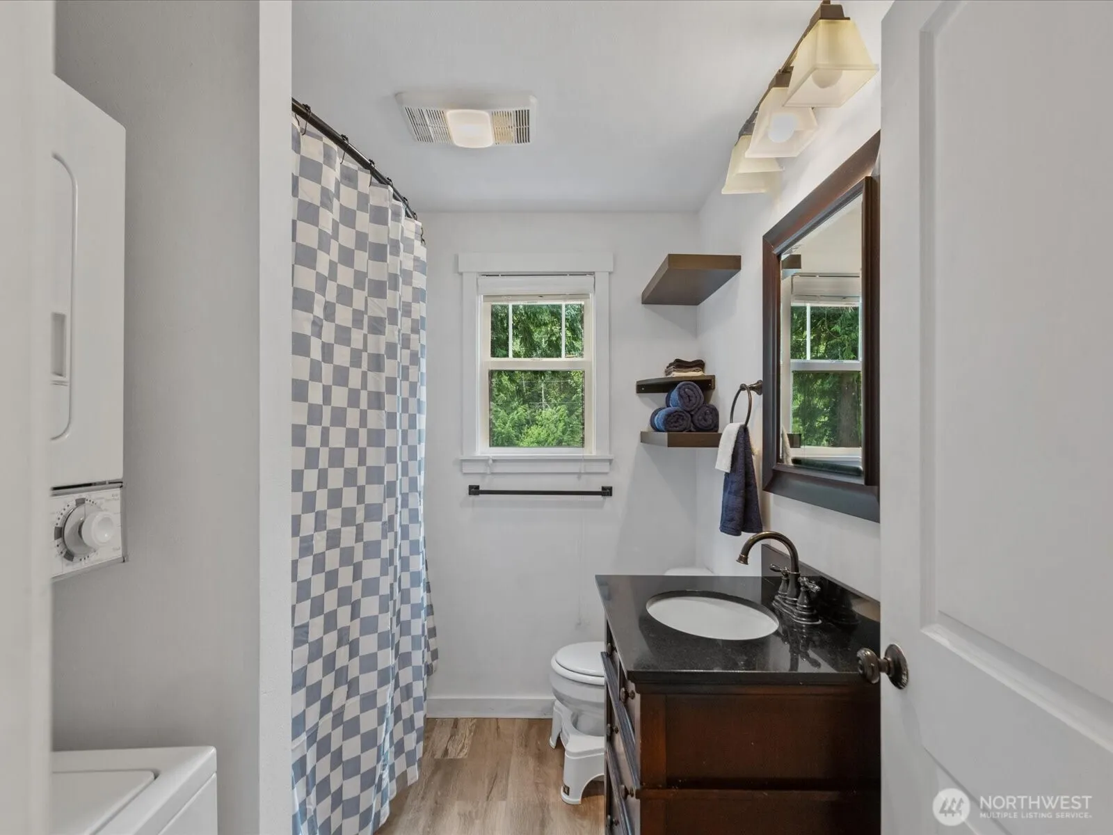 Welcome to this beautifully maintained Craftsman-style home nestled among trees. New floors & an open-concept layout create a warm space – perfect for entertaining. Kitchen offers ample cabinets & plenty of counter space for the serious cook. Upstairs find both bedrooms (primary offers walk-in-closet w/ built-ins) & extra bath. Enjoy outdoor living with private, sizable fully-fenced yard (complete with outdoor storage shed & greenhouse) & covered patio—ideal for year-round gatherings. Home boasts 30-year roof (2021,) tankless water heater (2022,) & a generator. Minutes from the lake & Wenberg Couty Park, with easy I-5 access, home combines small-town charm with everyday convenience. Don’t miss your chance to own this Craftsman gem!