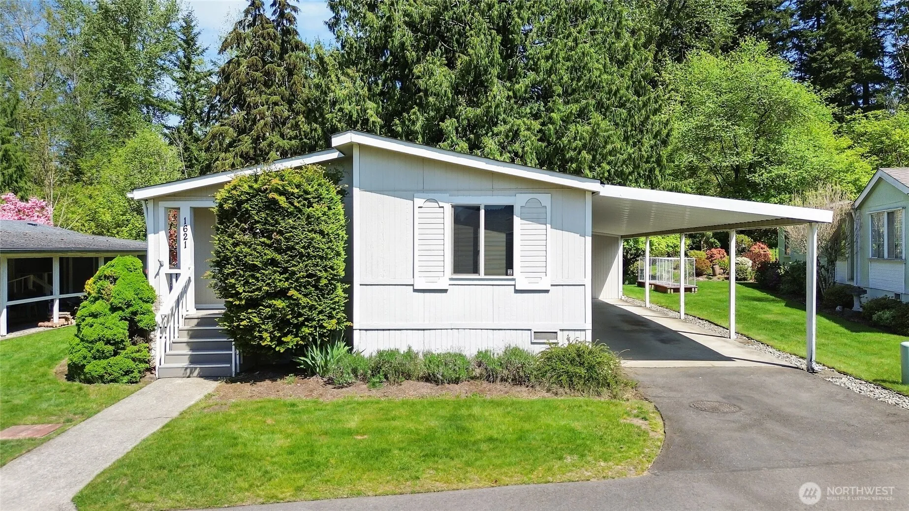 Welcome Home to Highly Desired 55+ Crystalaire Community in Enumclaw! Charming 1,568 square foot main level living home features 3-bedroom, 2-bathroom, a/c, vaulted ceilings, spacious kitchen, family room and dining area. Large primary bedroom has its own private bathroom. Backyard offers seclusion for you to relax. Large storage building, Monthly space rent is $950.00 and includes garbage, water and sewer. Small town living at its finest… Perfect location to downtown Enumclaw, Golf Course, Mud Mountain Dam Park, Mt Peak hiking trails & only 30 mins to Crystal Mountain. ~HOME SWEET HOME~
