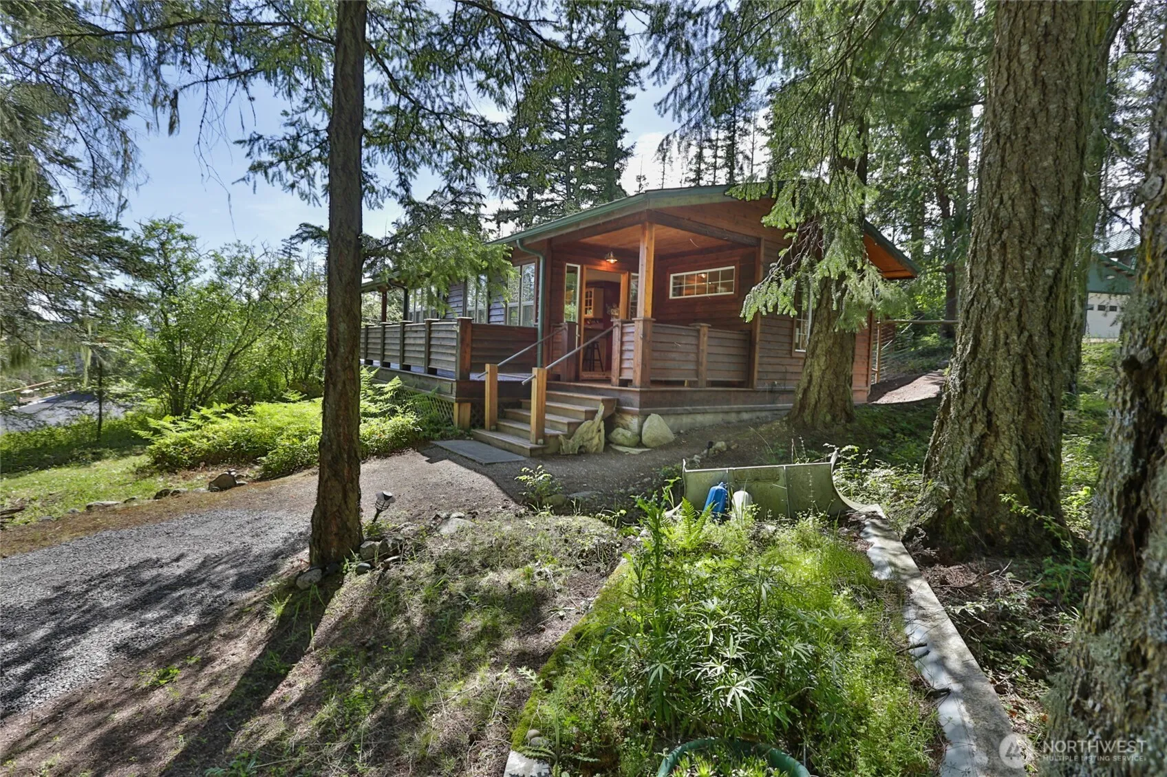 Discover tranquility in this charming, peaceful cabin retreat, just a short stroll from Roche Harbor Resort. Nestled among lush trees, mossy knolls, and sunlit grassy areas. Relish the privacy on a fenced 0.62-acre lot, perfect for gardening enthusiasts. Inviting single-story home with open floor plan features a cozy, free-standing propane stove, one comfortable bedroom, a modern ¾ bathroom, and Washer/D area. Indulge in the sauna or relax on decks, catching glimpses of the bay through the trees. Efficiently solar-powered with mini split heating and AC. The property also includes a 2-car garage with shop and an attached studio. Roche Harbor has marina, retail, grocery, restaurants, trails and activities. Move in ready and sold turn key.