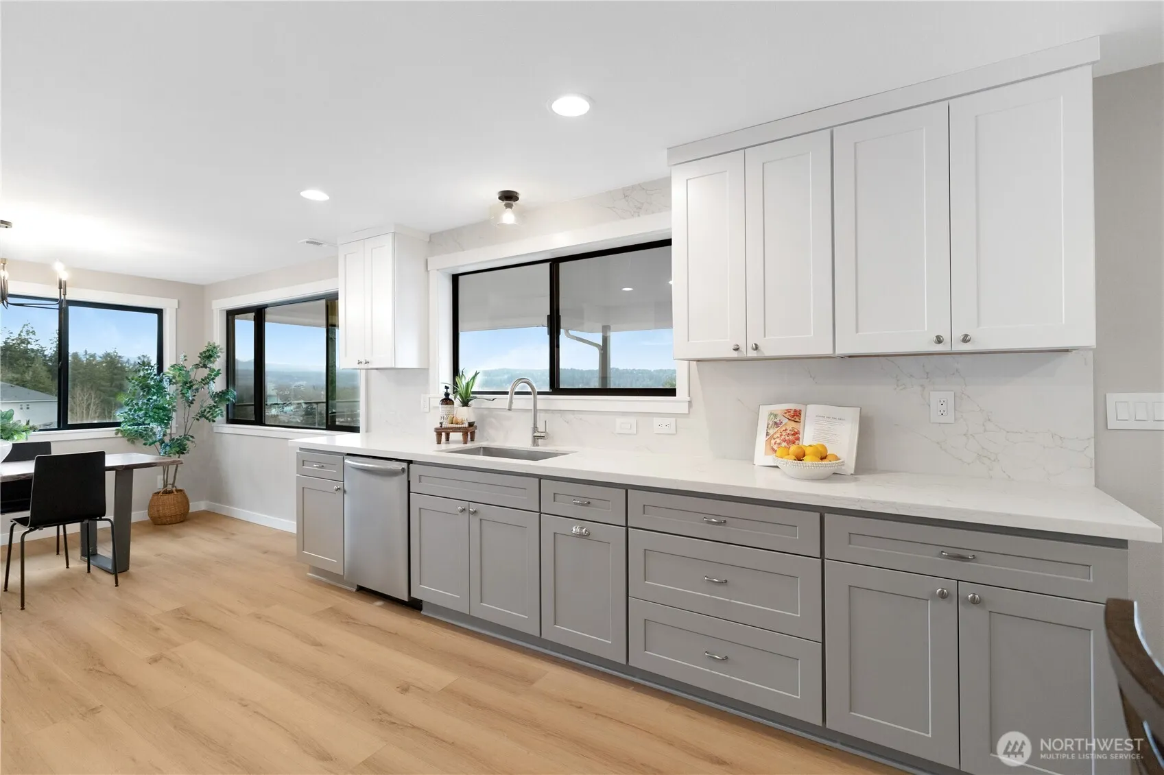 Priced to sell this beautifully renovated 3+ bedroom Edgewood home with incredible views of Mount Rainier and Puyallup Valley is an absolute stunner! Upgraded w/ new HVAC, electrical, and plumbing for modern comfort. Just minutes from downtown Sumner and the train station. Features include LVP flooring, high-end appliances, custom cabinetry, waterfall countertops, and designer finishes. The main-level primary suite offers a spa-like bath and a flexible bonus room. Full laundry on both levels, with the lower level ready for a kitchenette—perfect for multi-gen living, ADU or MIL suite with private, no-step access. Fantastic commuter location. Large flat usable land on lower level for sport court, garden etc. Don’t miss out on this rare find!