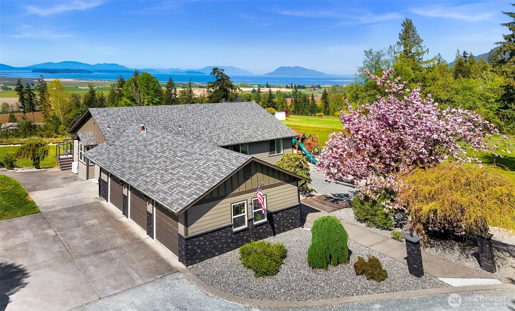 Spacious Country Retreat on 4.68 acres with near 180 degrees of panoramic bay & island views! This stunning like-new home was completely taken down to the studs & fully remodeled from top to bottom. Quality and craftsmanship are apparent throughout. The main floor features an expansive open-concept great room w/ oversized tri-fold door that opens onto the new deck, dining area & chef’s kitchen complete with a massive island perfect for entertaining. The daylight basement offers a large family room ideal for recreation or multi-generational living, a huge 7×16′ walk in safe, and 2nd laundry. Step outside to enjoy the garden space, greenhouses, fully fenced barn with tack room, and the huge 30×48 shop. The sunsets here are stunning. Must see!