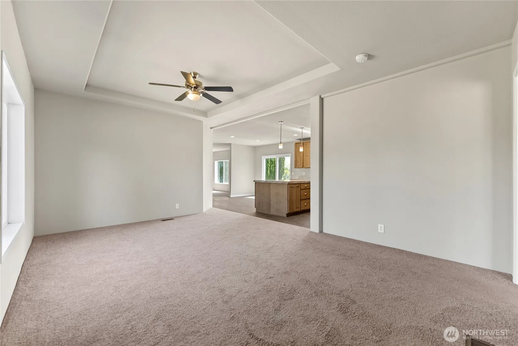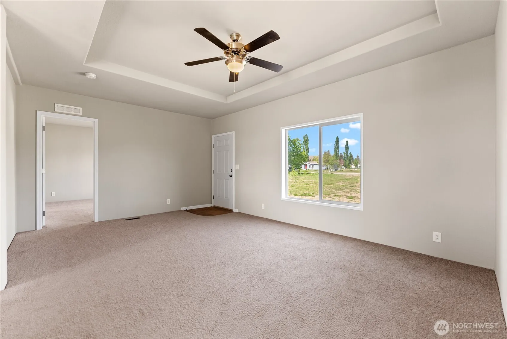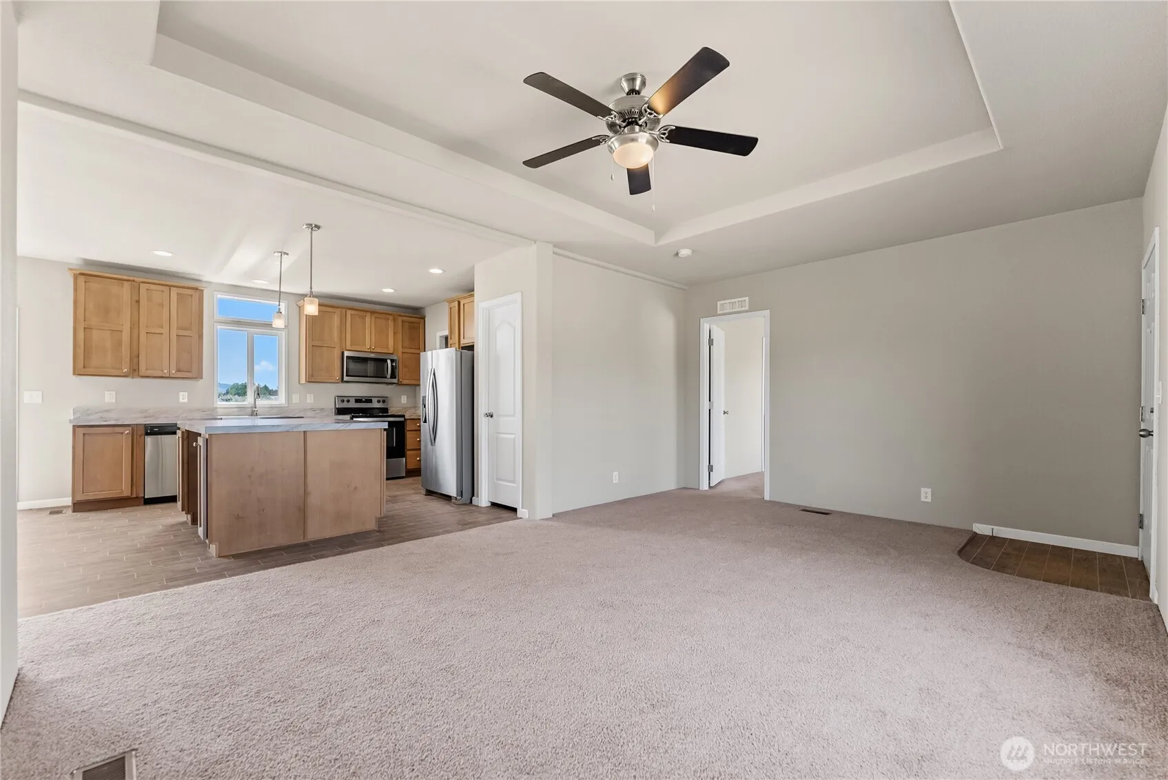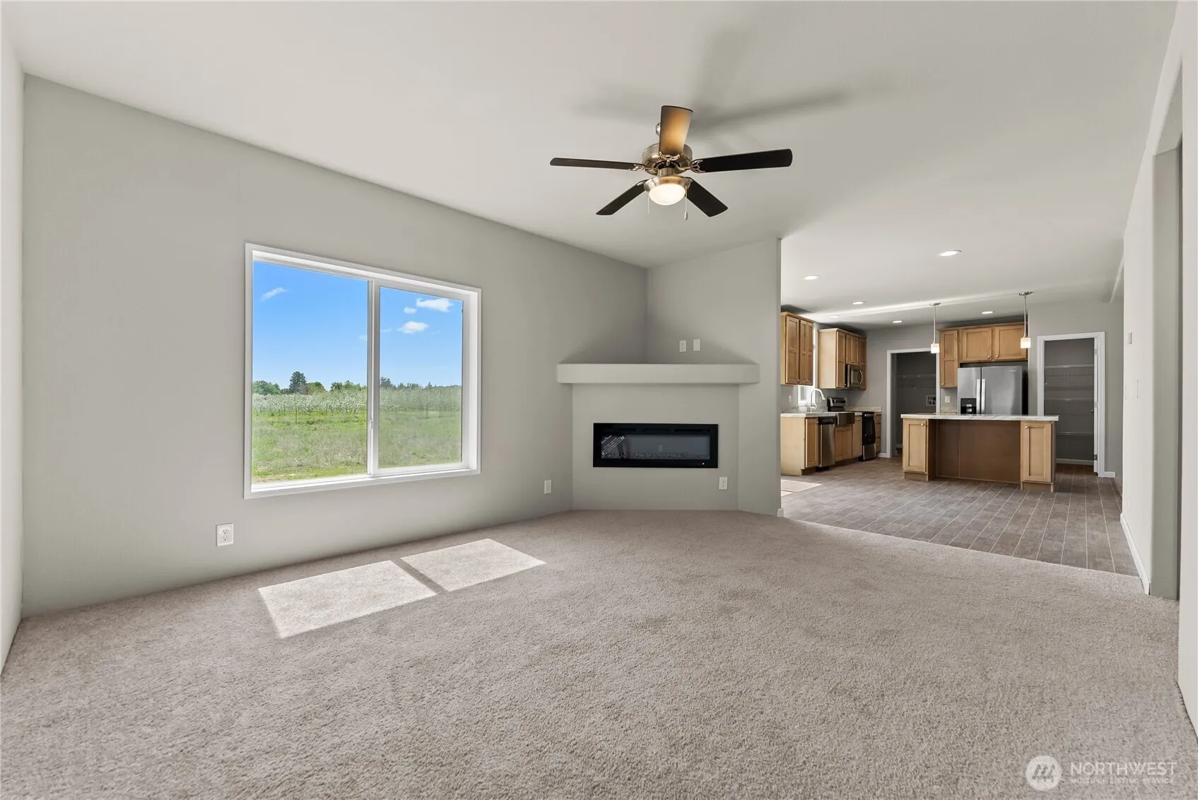 Built in 2022 this 3 bedroom, 2 bath manufactured home is on almost an acre! This never lived in property features a spacious floor plan with a large living room and coffered ceiling, separate family room with electric fireplace and a stunning kitchen with oversized island, walk in pantry and adjacent dining area. The primary suite includes a huge walk in closet and generous bathroom with extra storage. Laundry room with backyard access, 30-amp RV hookup and ample space to add a shop or garage. Enjoy irrigation water through OID. Room to grow and make it your own – don’t miss this one!