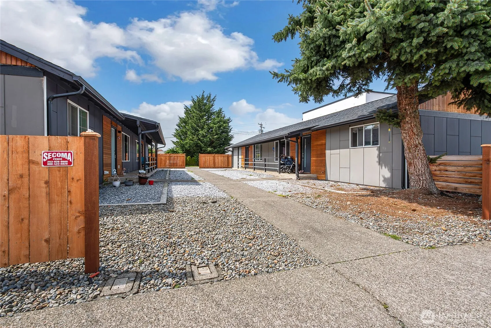 Modern updated 4-plex (two duplexes) in the heart of downtown Buckley, close to shops, dining, and other local amenities. Located in a growing area, these units feature a privacy fence and contemporary landscaping. Inside, you’ll find beautifully refinished original hardwood floors, exposed beams, and sleek contemporary finishes. The updated kitchens include stainless steel appliances and quartz countertops. Each unit is equipped with stackable washer and dryer and energy-efficient tankless water heaters. Separate meters for each unit. All units occupied and showings will not be booked until Mutual. Two parcels with a duplex on each lot.