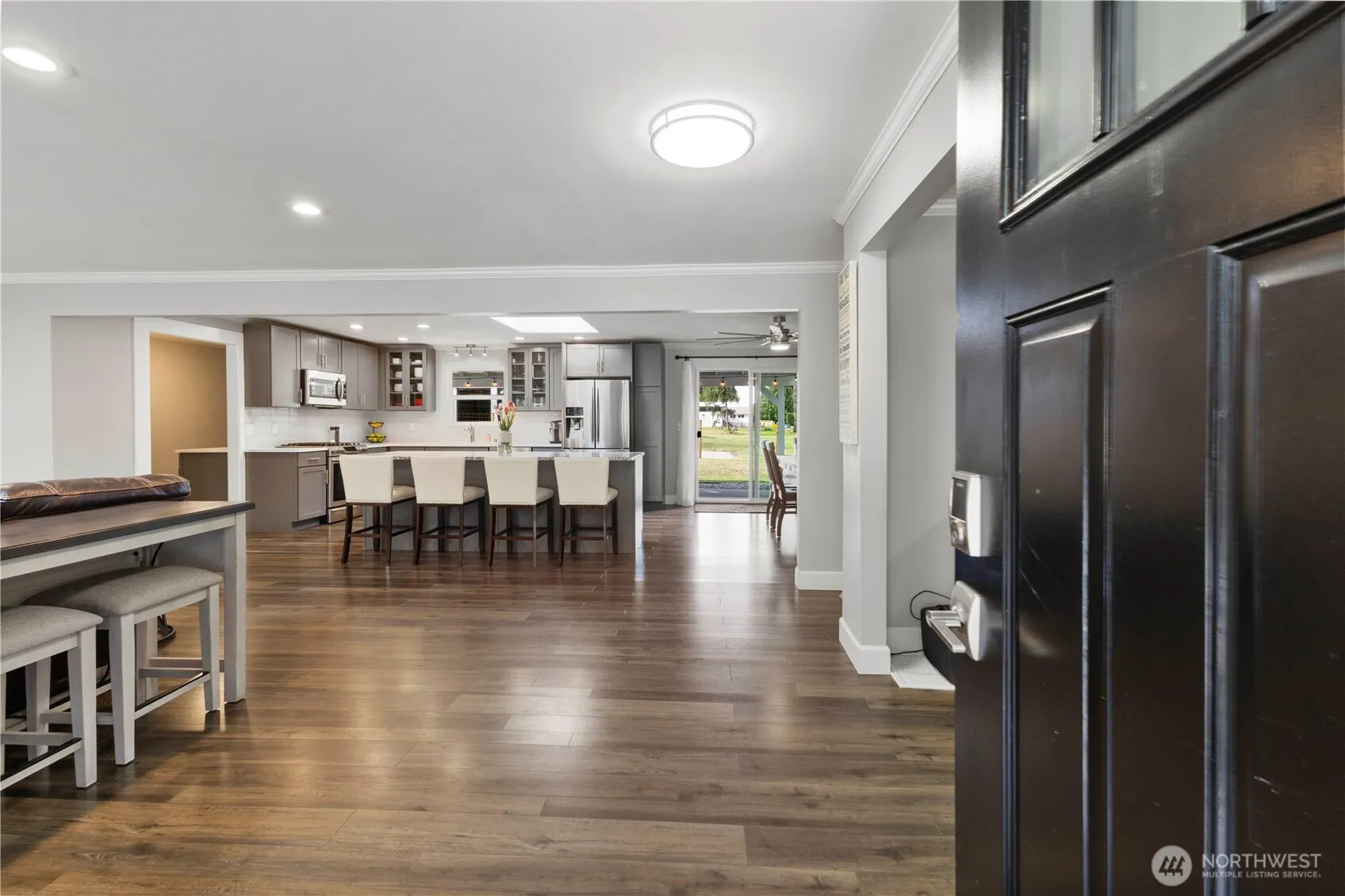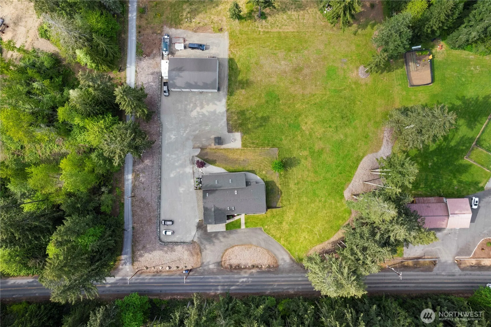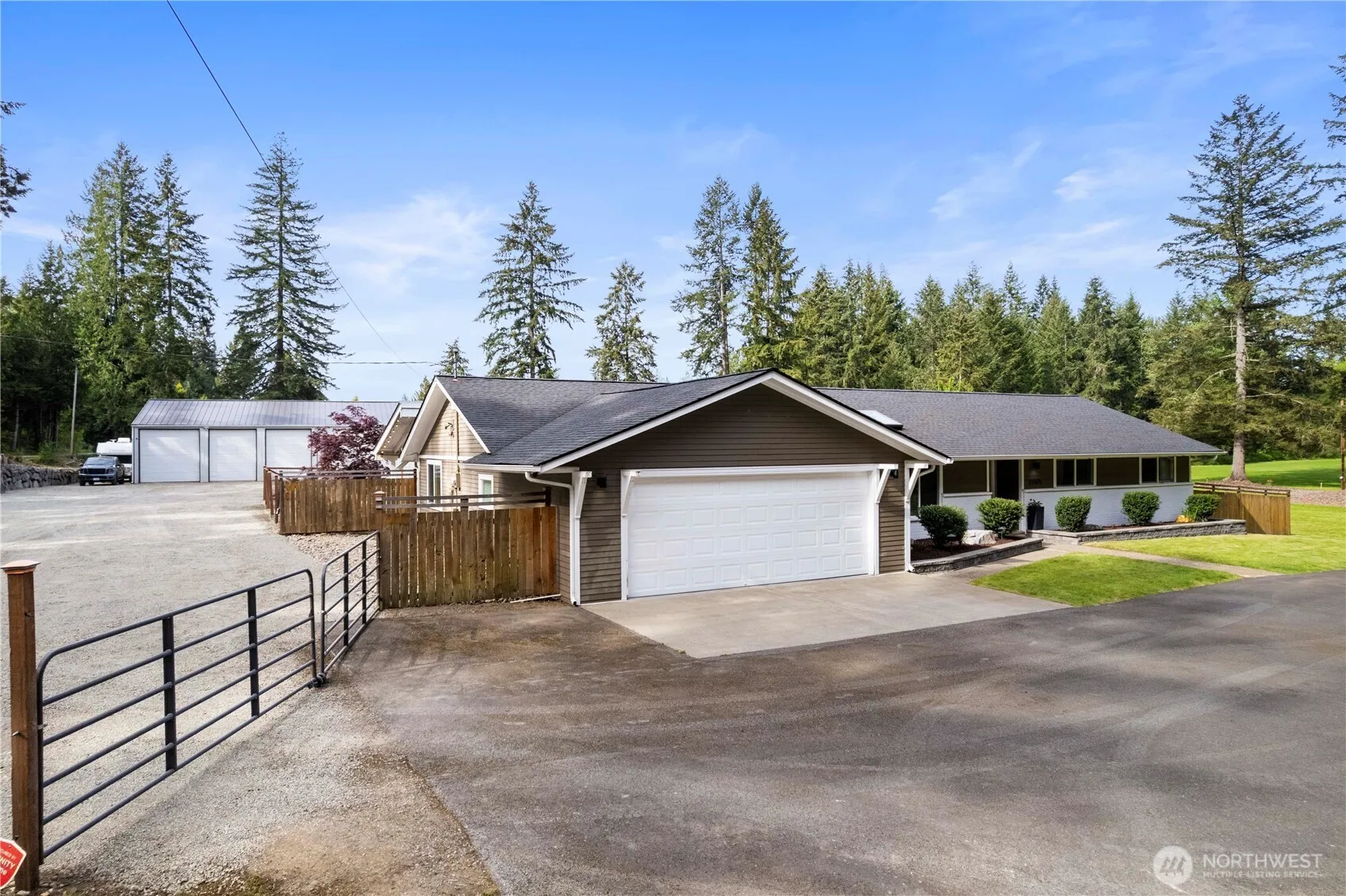 Stunning 2.2-Acre Rambler Estate with a Massive 2,480 Sq. Ft. Shop! Welcome to your private oasis—tucked away behind a circular driveway, this secluded home offers tranquility & space. Beautifully remodeled open-concept kitchen boasts quartz counters, glass-front cabinets, gas stove, classic full-tile white backsplash & SS appliances. Laminate hardwood throughout, barn door & fully updated baths. Primary suite with walk-in closet, dual vanities, soaking tub & private door to patio—a true escape. Expansive shop is equipped with tall bay doors, generous workshop area & storage loft. Enjoy year-round covered outdoor living space with hot tub. AC, Full hook up for RV with dump, wired for generator, newer gas furnace & endless features!