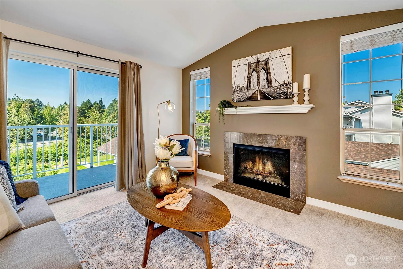 Why rent when you can own? Beautiful corner & top floor unit in the heart of Downtown Newcastle. Tasteful updates throughout! Sunny & spacious living room w/a vaulted ceilings & cozy FP, sliders to the deck overlooks sports court & lush green views for secure of your privacy. Dining room opens to the galley kitchen w/quartz countertops/breakfast bar. Spacious bathroom & full-size W/D. Common facilities: pool/hot tub/gym/indoor squash court/playground & clubhouse. Short stroll to Starbucks/QFC/Safeway/library & NC Commons/YMCA. Hop onto Metro bus, 5 min. drive to Factoria/T Mobile & close to I-405 & I-90. Strong HOA, pet friendly. Many guest parking spots, storage unit & Portable AC units are included. Excellent Issaquah SD. No rental cap!