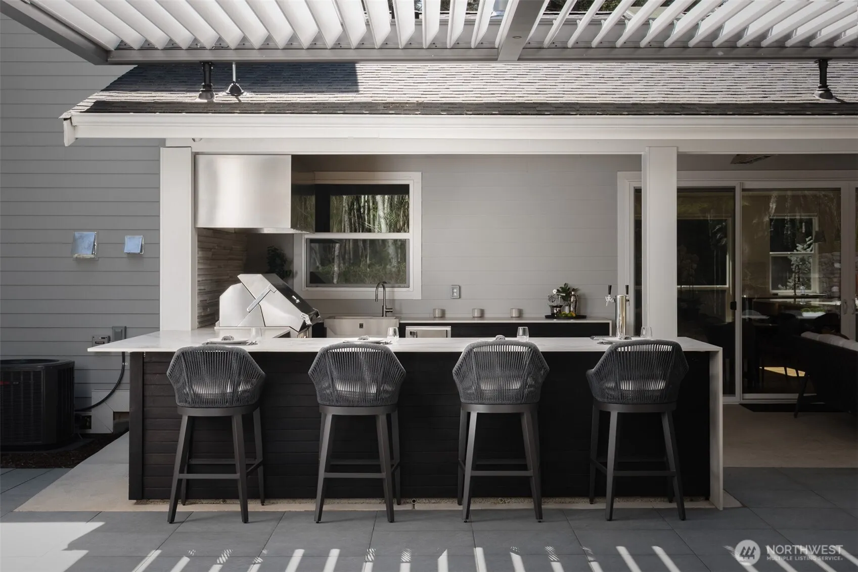 This exquisite 1.6-acre estate combines serenity and convenience.The home features three kitchens and a butler’s pantry, all with high-end appliances, custom cabinets, and waterfall sinks. It includes smart home technology, four refined bedrooms, and an inspiring office. The upstairs lounge doubles as a MIL suite with a private entrance and theater sound. Outdoors, an entertainer’s paradise awaits with heaters, surround sound, custom lighting, and a louvered roof. The outdoor kitchen boasts an ice maker, power burner, and vented hood. A year-round cabana overlooks a meticulously maintained lawn with advanced lighting. Close to freeways, top-rated schools,and minutes from downtown Issaquah, plus shared ownership of a lakefront lot with dock.