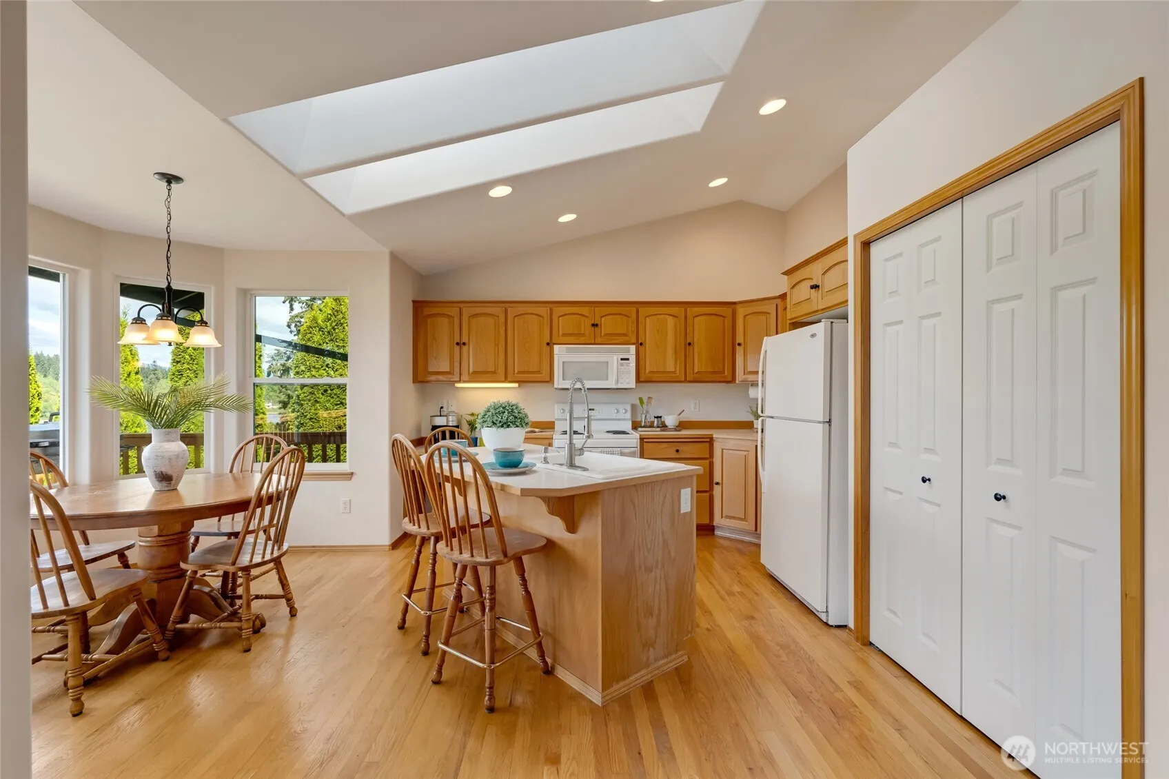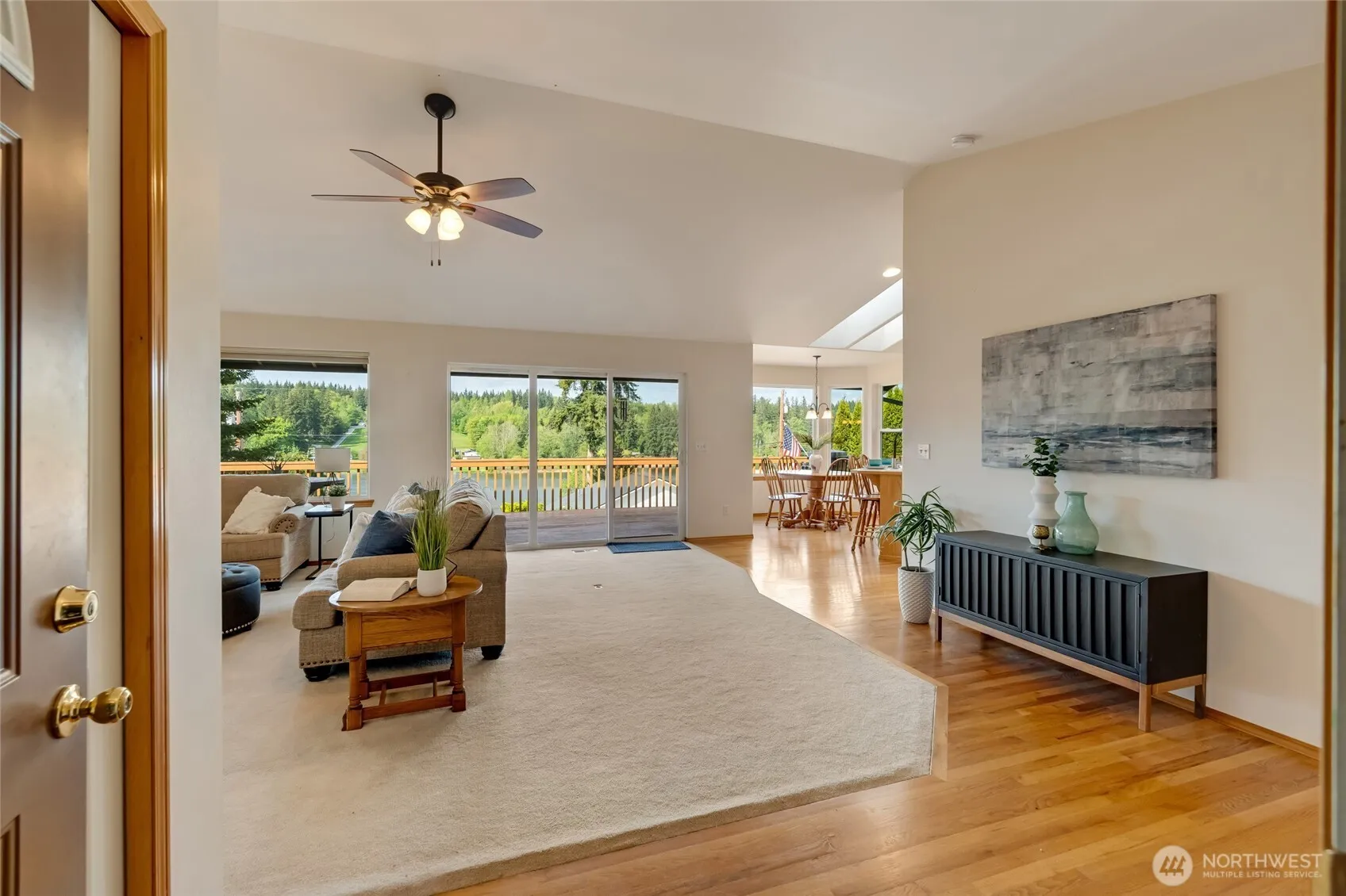 Welcome to the peaceful waterfront community around Sunday Lake! This charming single-level home offers tranquility and STUNNING lake views from the living room, dining area, kitchen, and primary bedroom. Step out onto the full-length deck from either the living room or primary suite—perfect for relaxing & entertaining! Skylights drench the eat-in kitchen w/ natural light. Downstairs, a spacious 704 sqft unfinished room is ready for your vision—guest suite, gym, media room, or play space. A two-car garage + attached carport provide ample parking. Enjoy year-round comfort with a newer roof, heat pump, and whole-home generator. Community boat launch and park are just down the street. Incredible opportunity in this low-turnover neighborhood!