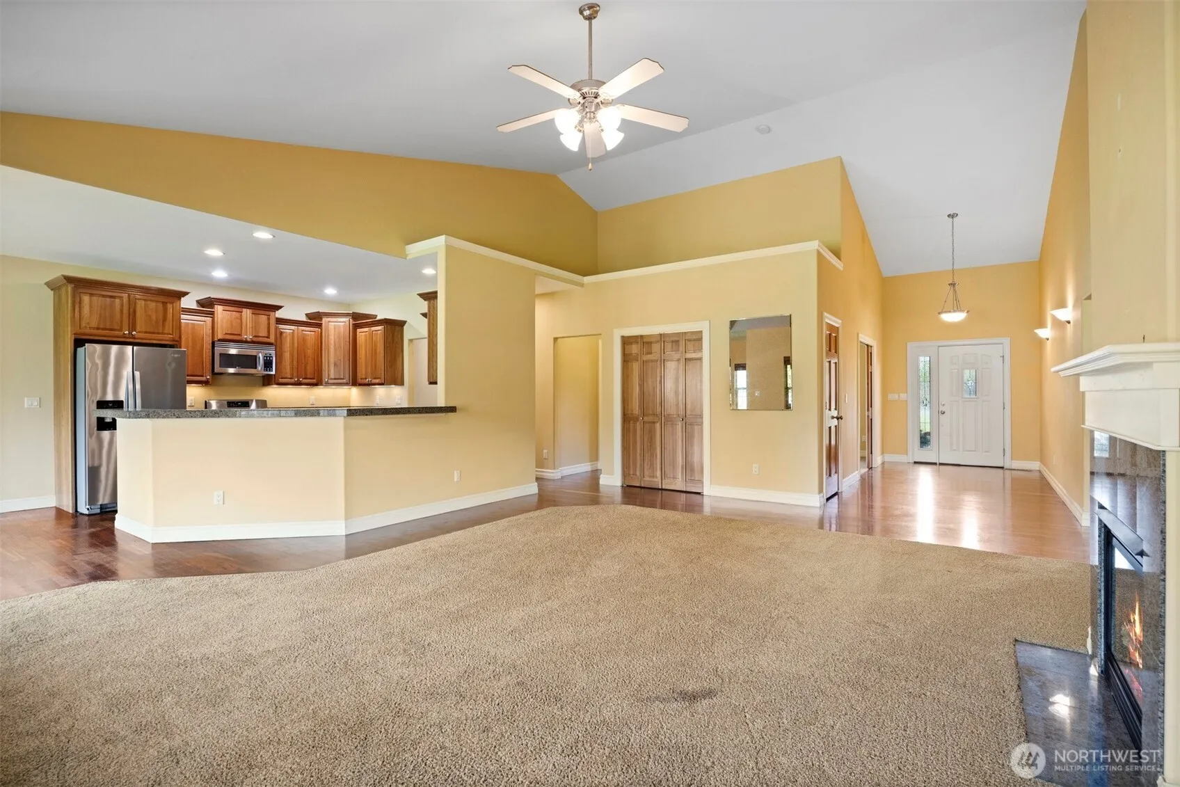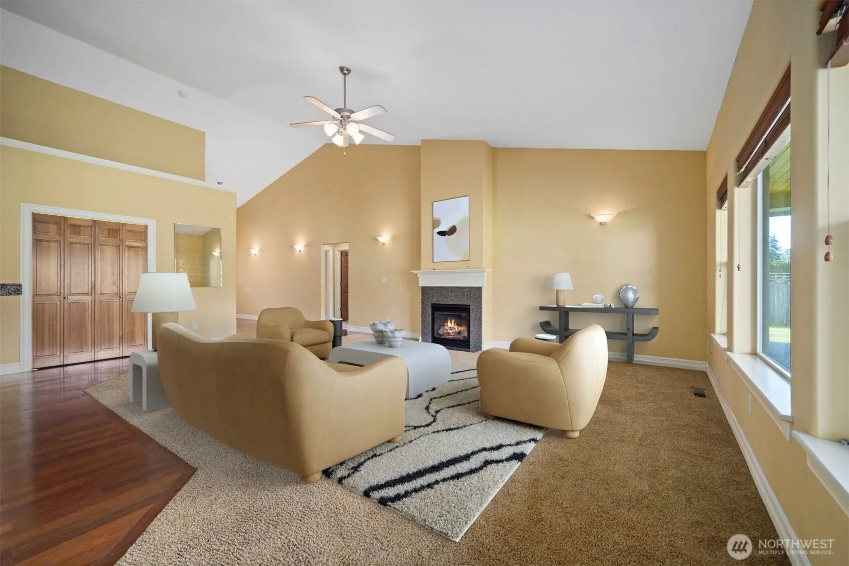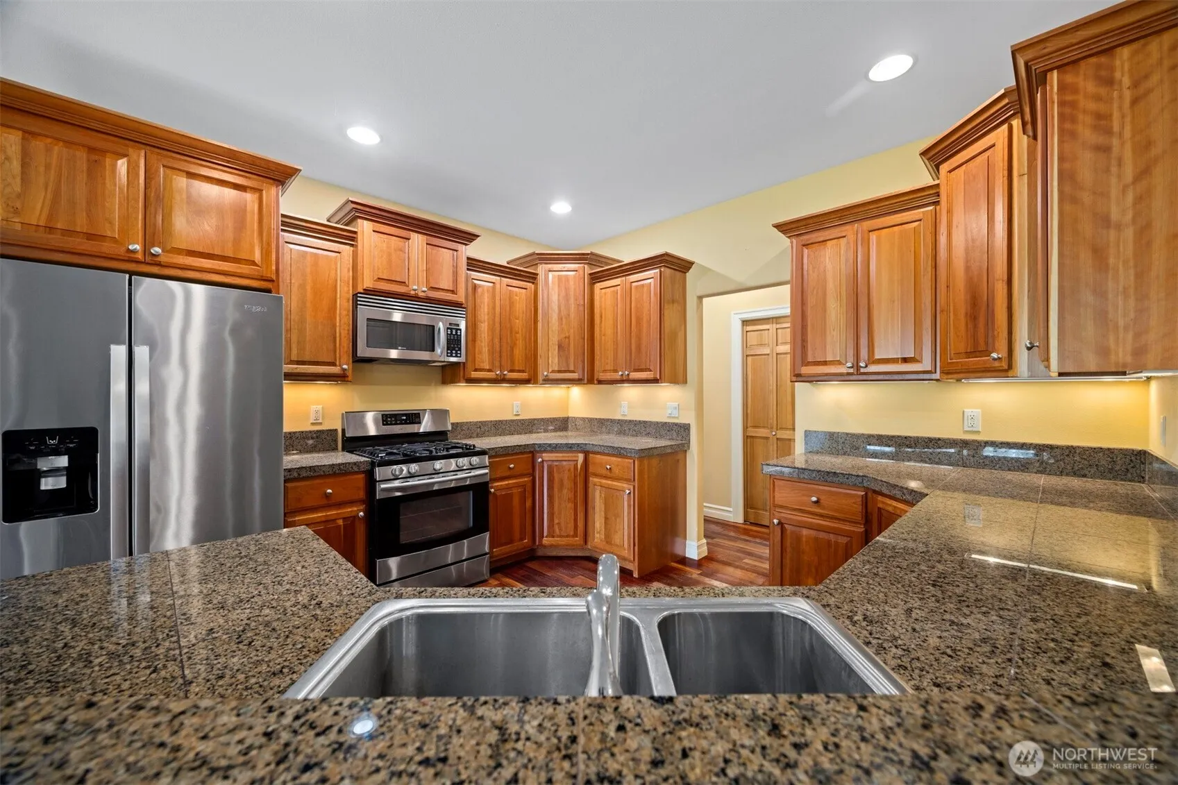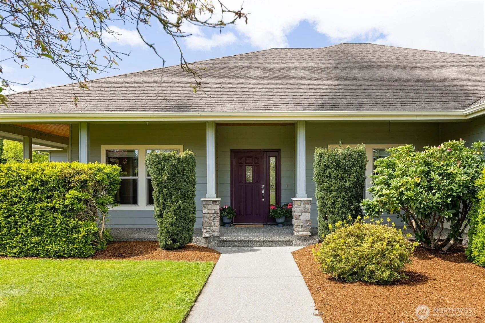 Nestled on nearly an acre in a premier neighborhood close to shops and amenities, this elegant Northwest-style estate offers a smart, private layout. The grand entry opens to vaulted ceilings and cherry wood floors, with the spacious primary suite on one side and guest rooms on the other. The open-concept living area features a gas fireplace and a dining space perfect for entertaining. The primary suite includes a large walk-in closet, double sinks, and a soaking tub. A covered back porch overlooks the fully fenced yard with shop potential. Extras include an executive-sized office, dog wash station, irrigation, and a brand-new 95% efficient furnace. Peaceful yet convenient, with a flat, usable lot and 3-car garage close to I-5.