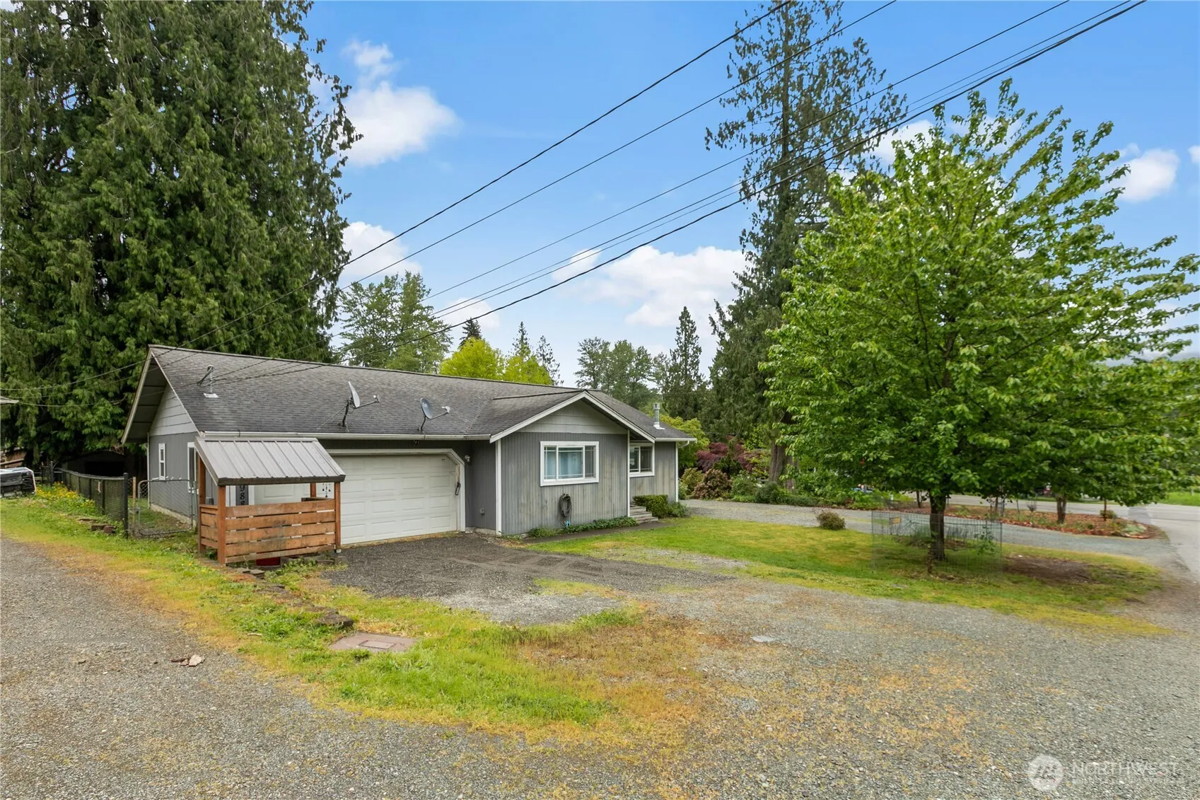 Single-level home nestled in peaceful Glenhaven Lakes just 20 minutes from Bellingham. Enjoy the perfect blend of a close-knit neighborhood w/quiet country living. Spacious kitchen inc. wraparound granite tile counter, stylish glass tile backsplash & full appliance pkg. Adjoining dining offers a built-in China cabinet, addtnl cupboard space & pantry. The cozy living rm inc. a freestanding propane frplc for warmth & ambiance. Primary bdrm boasts slider to rear deck & ensuite bath w/marble tile floor. The 2nd full bath also features marble tile. Fenced backyard provides space for garden & is adorned w/3 mature cedar trees. At the end of a quiet cul-de-sac, this home offers a peaceful retreat. A little exterior TLC will make this home shine!