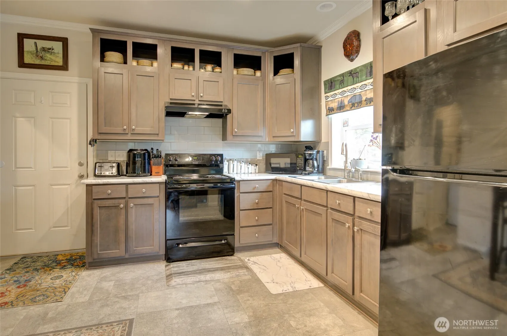 A 2023 built manufactured home, 2 bedrooms, 2 bath on approximately 12-13 acres. The home sits near the top of the hill with a nice territorial view. A covered deck on the backside creates a shady spot to relax. Extra roomy garage/shop is located further down the hill, as well as an RV electrical hookup, fenced chicken coop and full woodshed, with electricity. Lots of parking. One side of the property is lightly treed, there are apple and plum trees and some of the remaining area has been seeded for new timber growth. The septic and well were newly installed when the home was put in place. A privacy gate is up the driveway a bit from the highway.