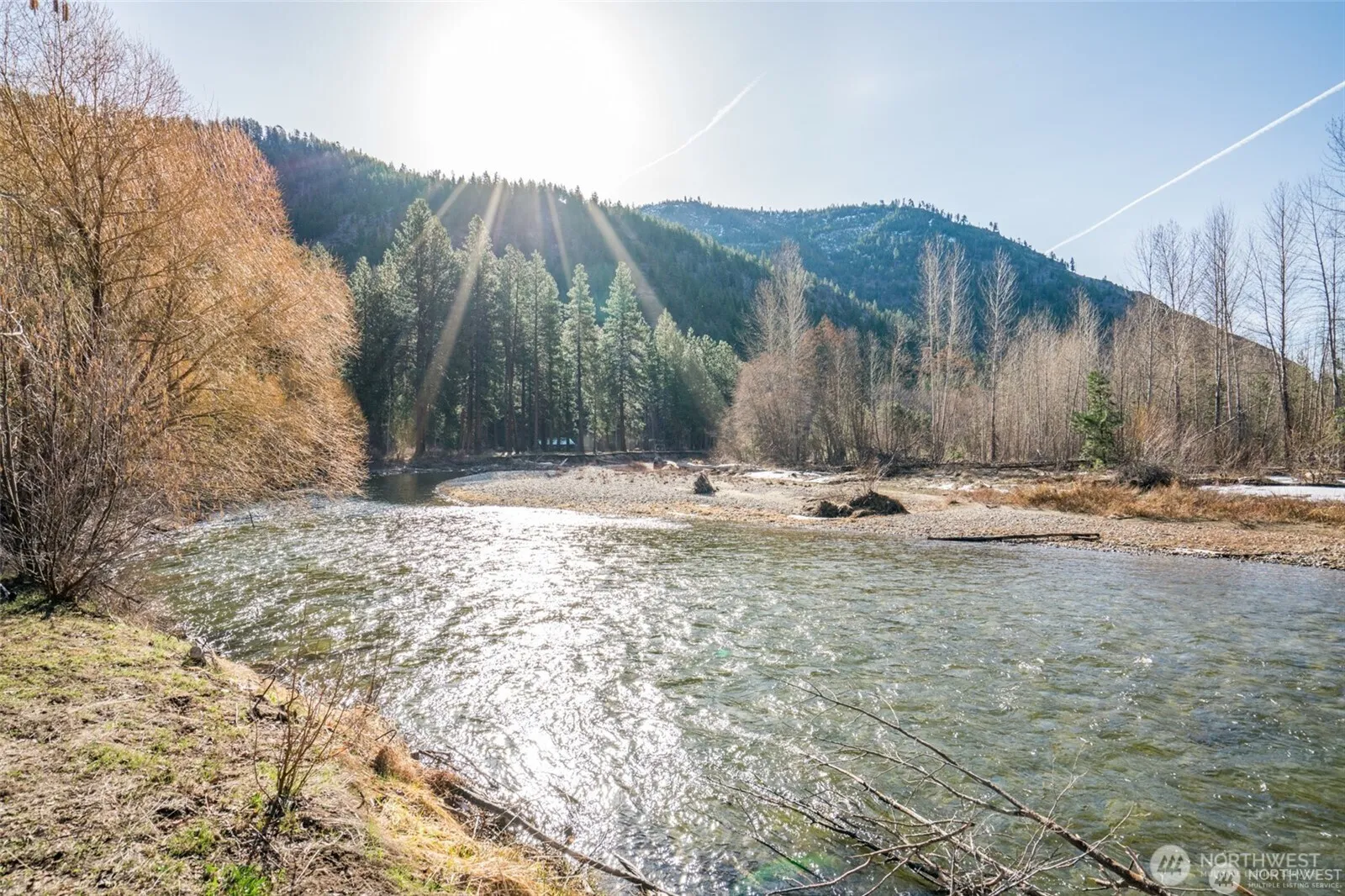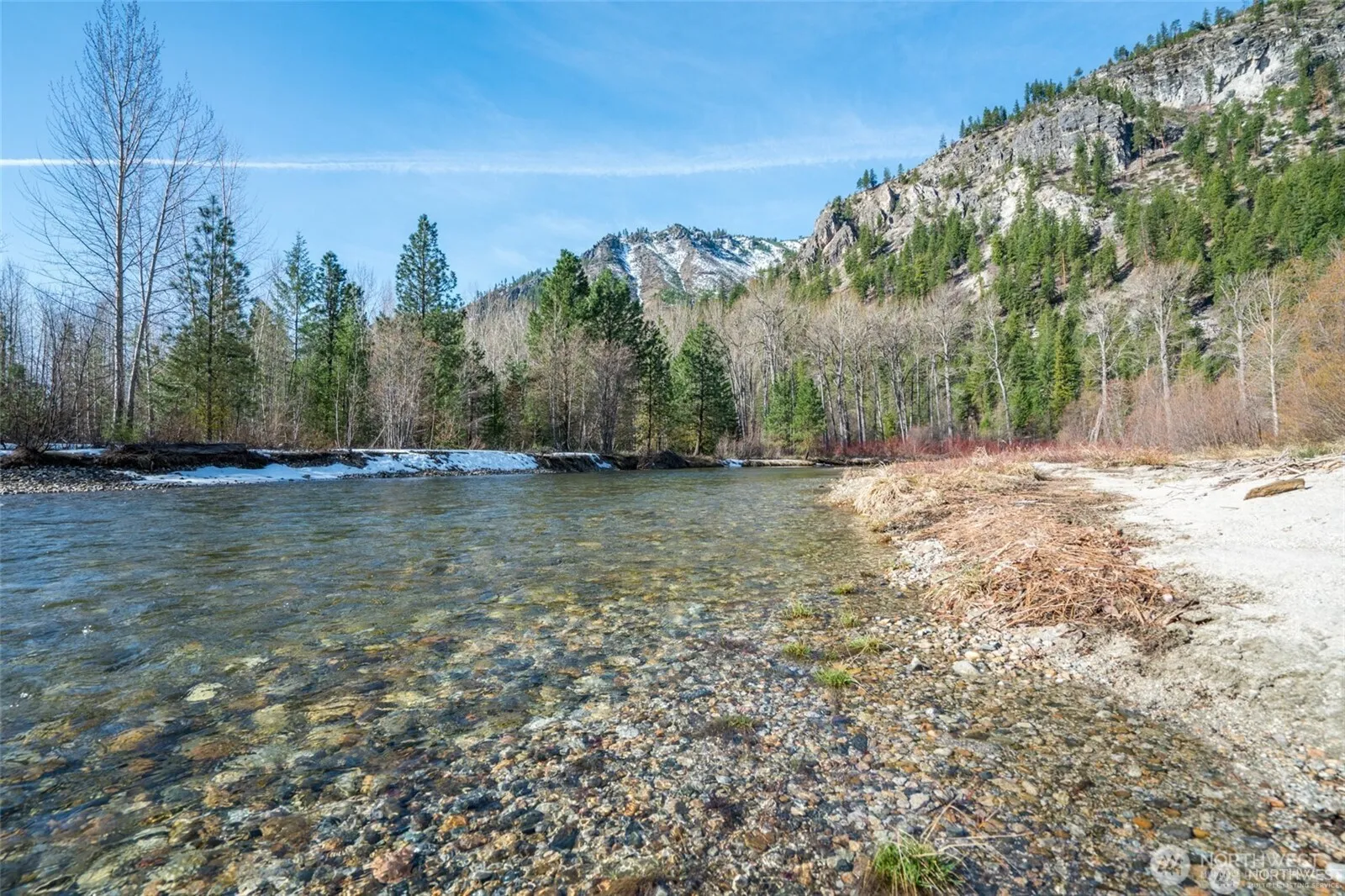BREATHTAKINGLY BEAUTIFUL! This secluded 5+ acre property designed for nature lovers boasts 800+ ft of pristine low-bank river frontage featuring sandy beach, salmon spawning grounds and abundant wildlife embraced with lush flora. Included is a 1,470 SF heated shop with 2-10′ doors (drive-thru) and a 14′ door w/ 220 power inside and out. 3 RV pads with power and water offer convenient accommodations, perfect for the outdoor enthusiast. A foundation is already in place with two sets of building plans available. This is a special opportunity to create your own tranquil Shangri-La on the banks of the glorious Entiat River. NO HOA