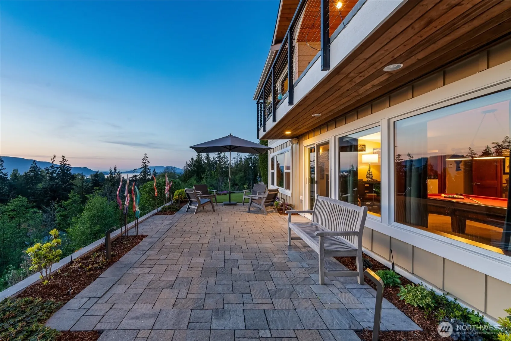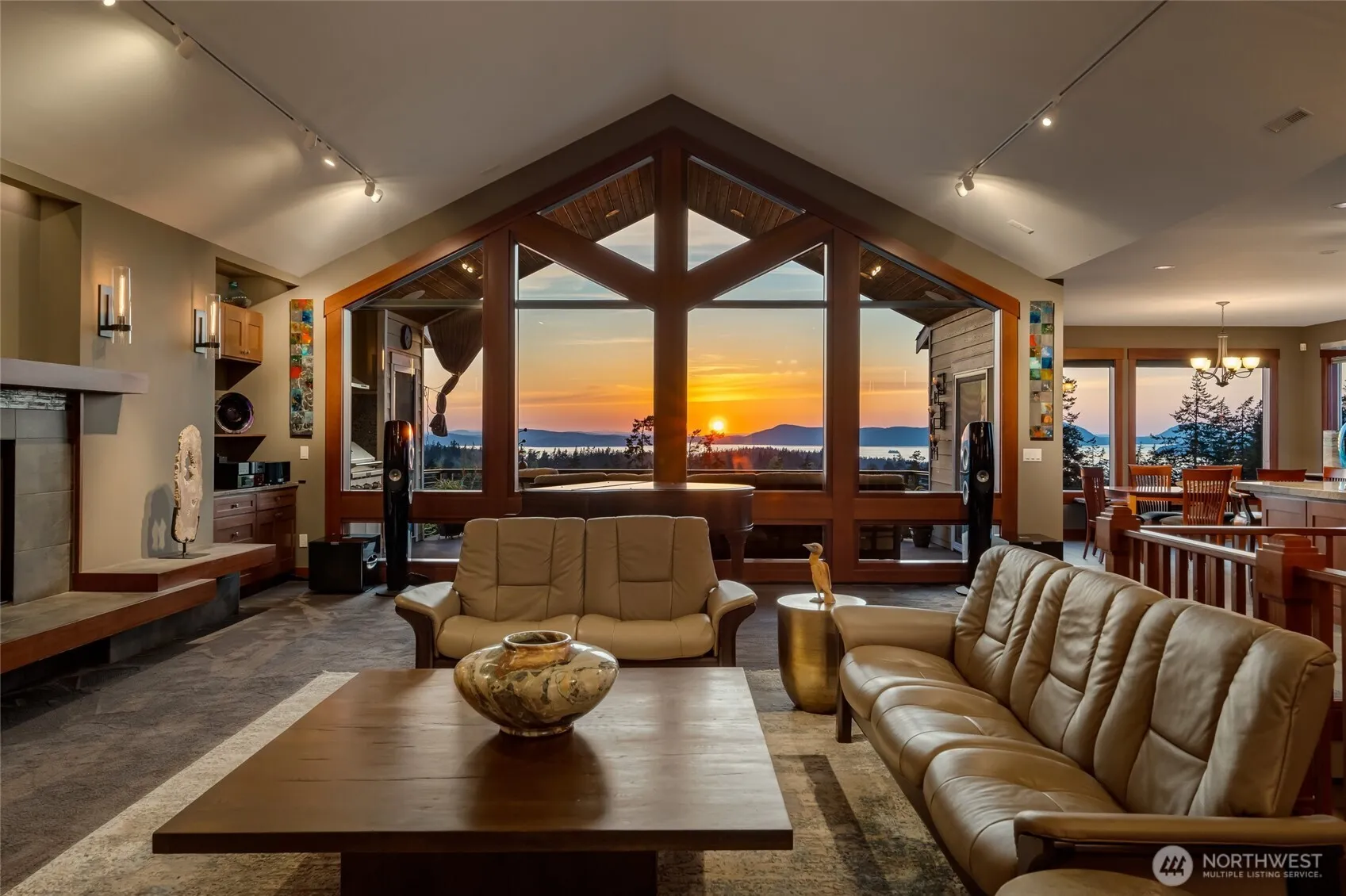 A rare offering in Rock Ridge. This exquisite custom home captures commanding views of the Rosario Straight, vibrant boating activity, and dramatic sunsets. The San Juan Islands are beautifully showcased in every direction, offering an unforgettable backdrop. Main-level living features a chef’s kitchen, private office, guest suite, and a grand owners’ retreat with a relaxing spa bath. A covered deck on the main level with built-in gas grill invites seamless indoor-outdoor living. Sophisticated interiors with exceptional materials and exquisite craftsmanship throughout. The lower level offers two en suite bedrooms, a 10-seat theater with projector and screen, and a custom patio with hot tub. An extraordinary setting and an exceptional home.