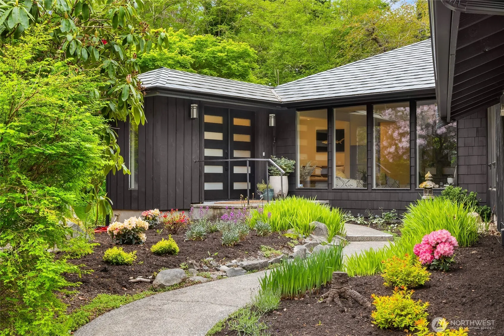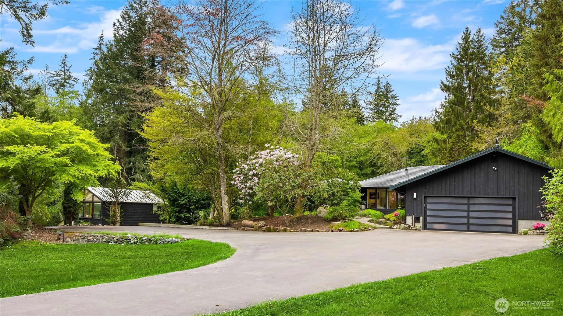 Stunning one-level home with a detached studio on lovely acreage abutting the Bloedel Reserve. The approach is along a peaceful driveway past your own pond & gorgeous gardens with a huge English walnut tree. The lot is private & sunny. Inside this home is open & airy with large windows to bring the outside in…a perfect home to entertain in with a great room that spills out onto expansive decks as well as separate spaces to work or play in. Beautiful, beveled glass French doors lead to a wonderful office. Main house has 2304 sq ft & detached studio with a full bath & large private deck has an additional 432 sq ft. Don’t miss the fabulous greenhouse with radiant heated tables tucked in the garden, & workshop off the garage.