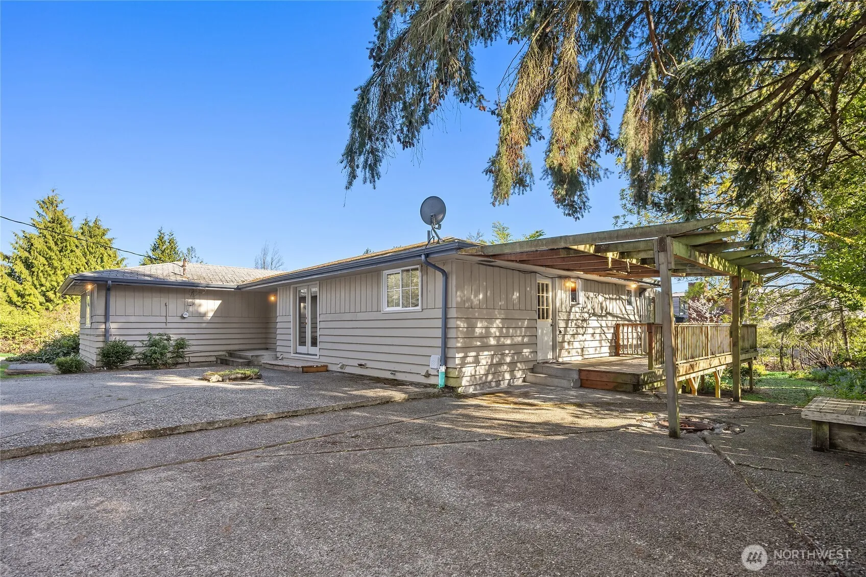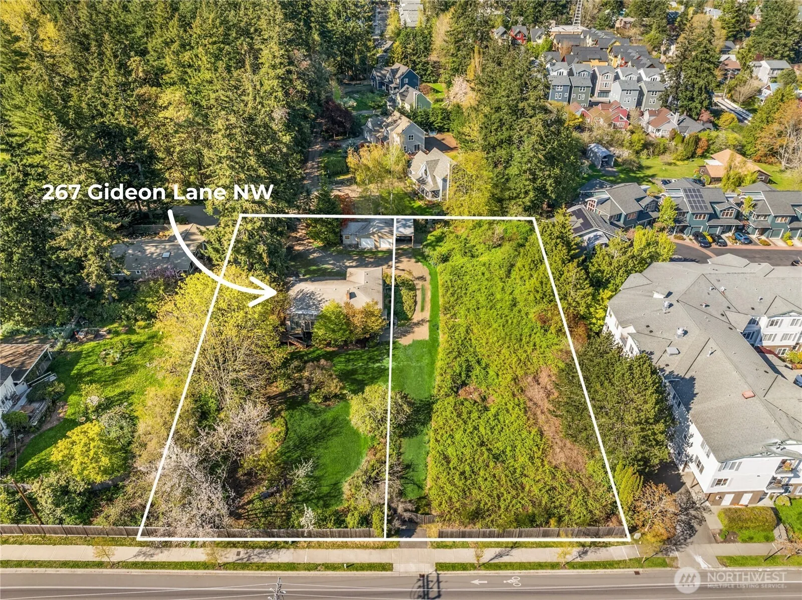 Opportunity knocks! Fantastic Winslow property with excellent development potential, tucked down a quite lane on a sunny, nearly level (gentle slope north to south) shy half acre. The duplex home includes a two-bedroom unit on the main floor and one-bedroom unit with separate entry on the lower level. A detached garage has two bays and additional enclosed storage. Just down the street a neighborhood park, and a few blocks from restaurants, movie theater and bustling downtown Winslow. With R-4.3 zoning, a 0.46-acre lot and an adjoining property also available for purchase (see MLS#2366514), this is a rare chance to create a new small development in town. Zoning Summary and Concept Site Plan available.