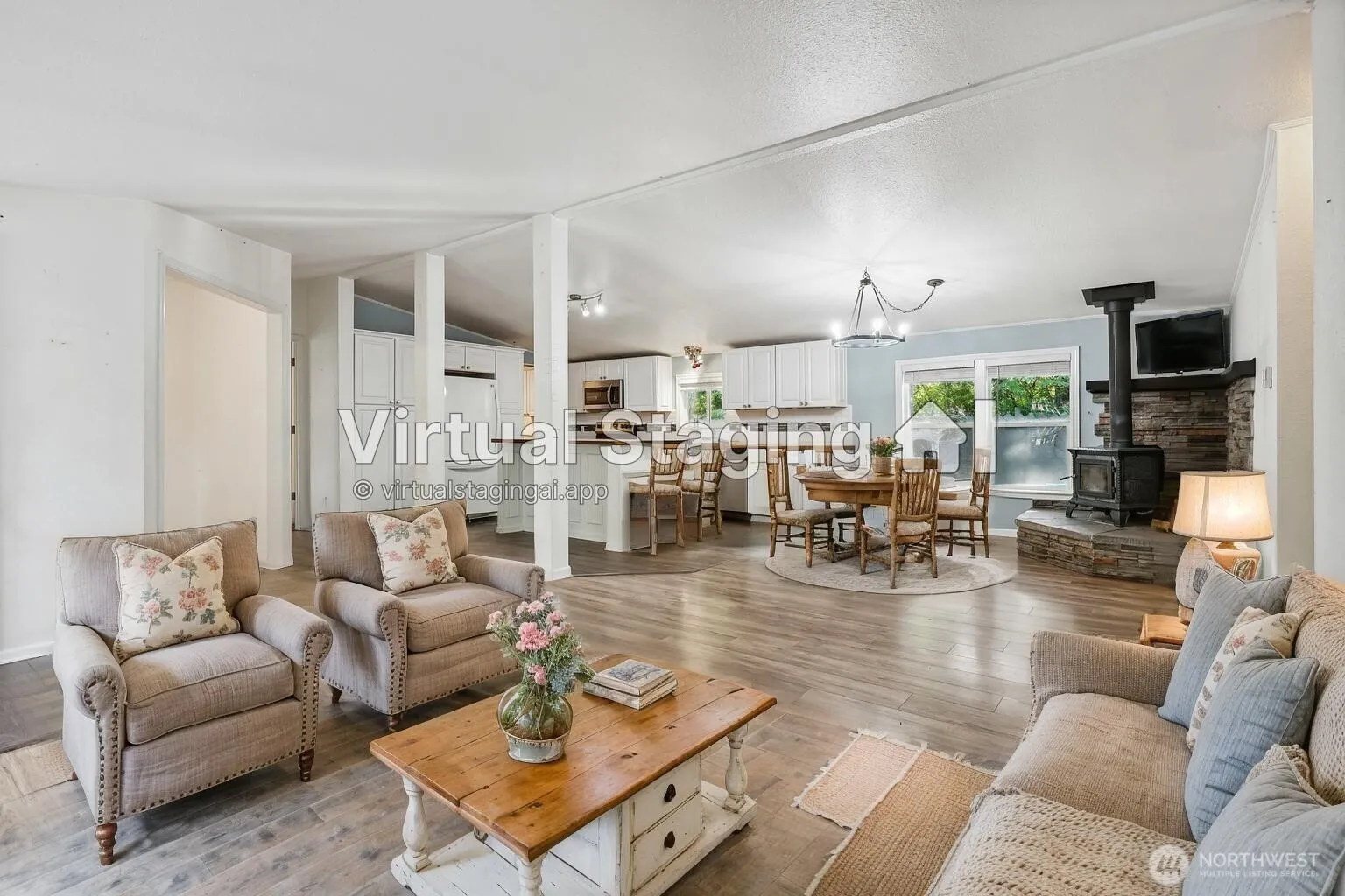 Extra Extra Extra-just like the old news papers this home has Extra everything-Manufactured as 5 bedroom and sits on 5.31 fully fenced + cross fenced acres with a private well and 3 bedroom septic. Extra huge level lawn. Extra gates everywhere. Come cuddle up to the permitted wood stove or in the Hot Tub. Extra new roof 2025. 2 Extra finished rooms on the room list are bedrooms and there is still and Extra Den. 2 car enclosed shop- plumbed and lighted for your air tools. Extra RV parking. Extra out buildings. Extra Huge park in Barn. Productive garden-Privacy-trees. Not in flood plane.