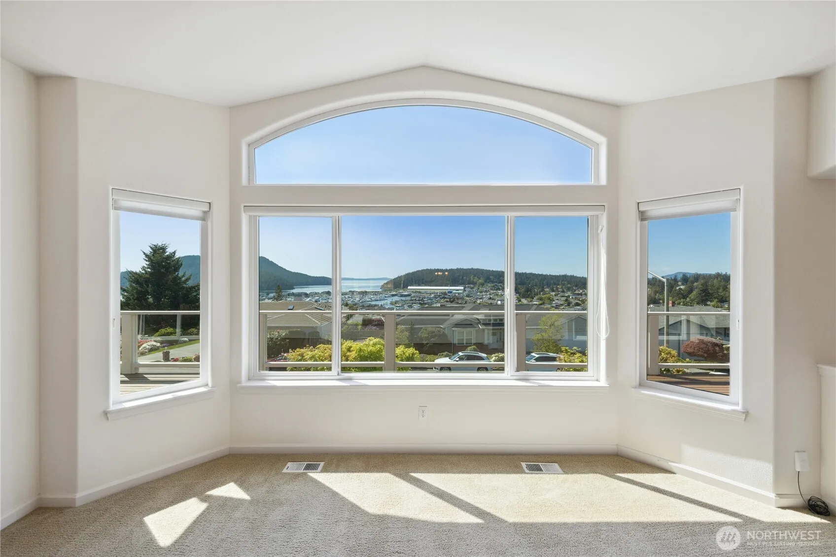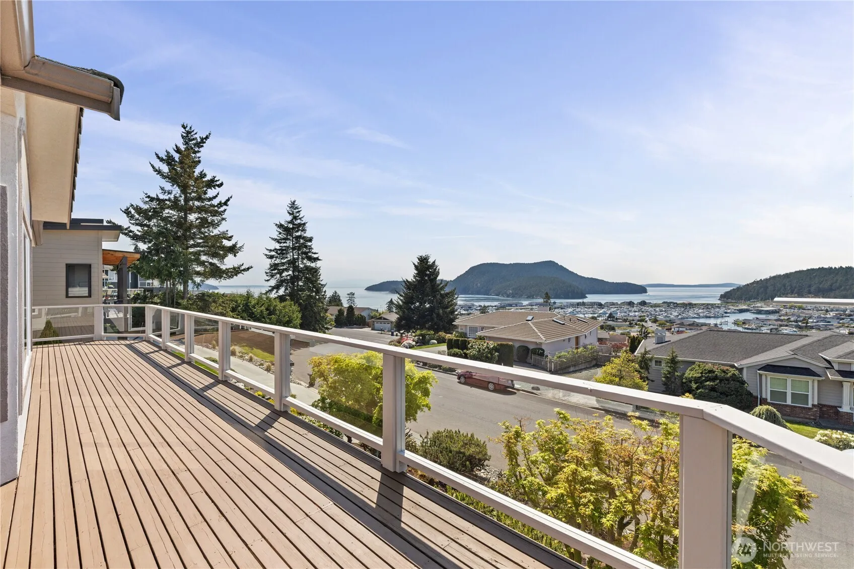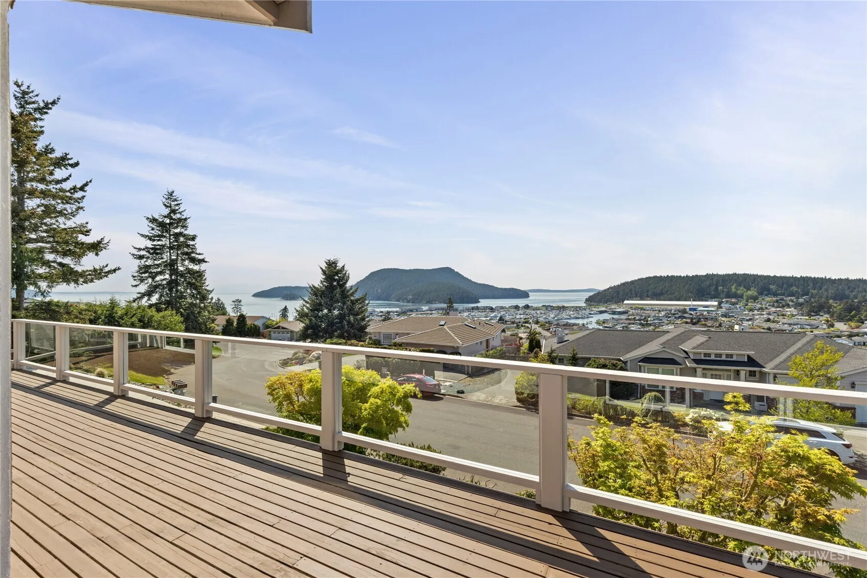 Wake up to big views of Skyline Marina and Burrows Bay. Entertain on the deck during amazing sunsets over the water and the Olympic Mountains. This two-level home is in the highly desired Skyline Marina community and doesn’t disappoint! The see-through gas fireplace on the main level provides a central focus to open floor plan. Room to live and room to grow in this delightful four-bedroom home. The primary suite on the main level has its own views and opens to the deck. Park in your attached 3-car garage or use extra space for shop work, hobbies or storage (and there is a lot of storage in this home). Gardens and landscaping are purposefully low maintenance with striking shrubbery to beautiful trees. This home is move-in ready! Don’t wait!