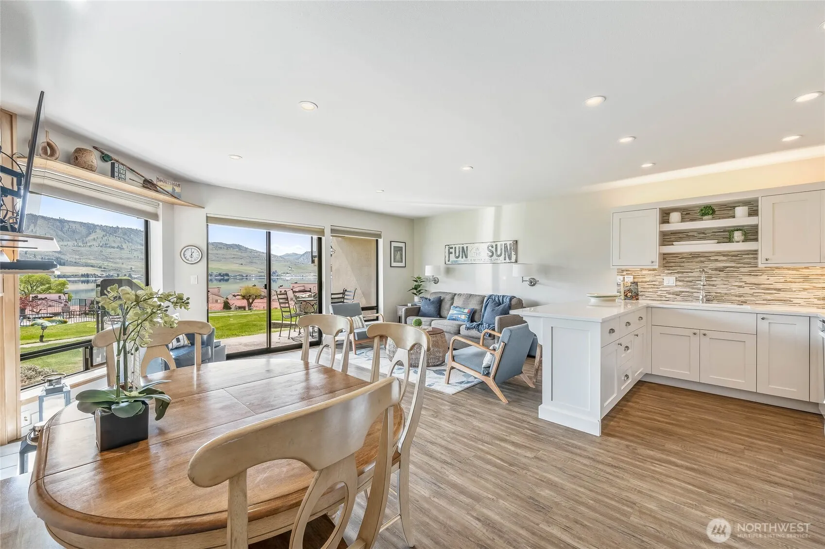 Soak in breathtaking, unobstructed views of shimmering Lake Chelan from this completely remodeled, beautifully updated waterfront retreat at Lake Chelan Shores. This luxury unit offers effortless indoor-outdoor living with a private balcony just steps from the shoreline. Comes fully furnished with a new TV, kayak, and paddle board! Enjoy stylish finishes, an open layout, and light-filled interiors. Prime location near the pool, large grass area, dock, beach, and jet ski rentals. Ownership includes swimming pools, private beach, boat launch, tennis courts, fitness center, and more. Whether a serene getaway or income-producing vacation home, this is lakefront living at its absolute finest—where every day feels like a five-star escape.