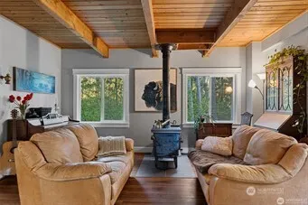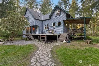 Nearly 4 acres of deeded land in La Conner — a rare private retreat surrounded by mature trees. This 3-bed, 1-bath home offers an open porch and a generous yard, ideal for gardening, raising chickens, and enjoying peaceful outdoor living. A nostalgic old cabin sits near the front of the property, alongside one RV hookup with power, a large garage, and multiple outbuildings for storage or workspace. Just a short drive from the ocean and only a few minutes from downtown La Conner, known for its vibrant art scene, boutique shops, farm-to-table dining, and acclaimed marina—a gateway to the San Juan Islands. Convenient access to I-5 makes commuting to Seattle, Vancouver, or BC a breeze.