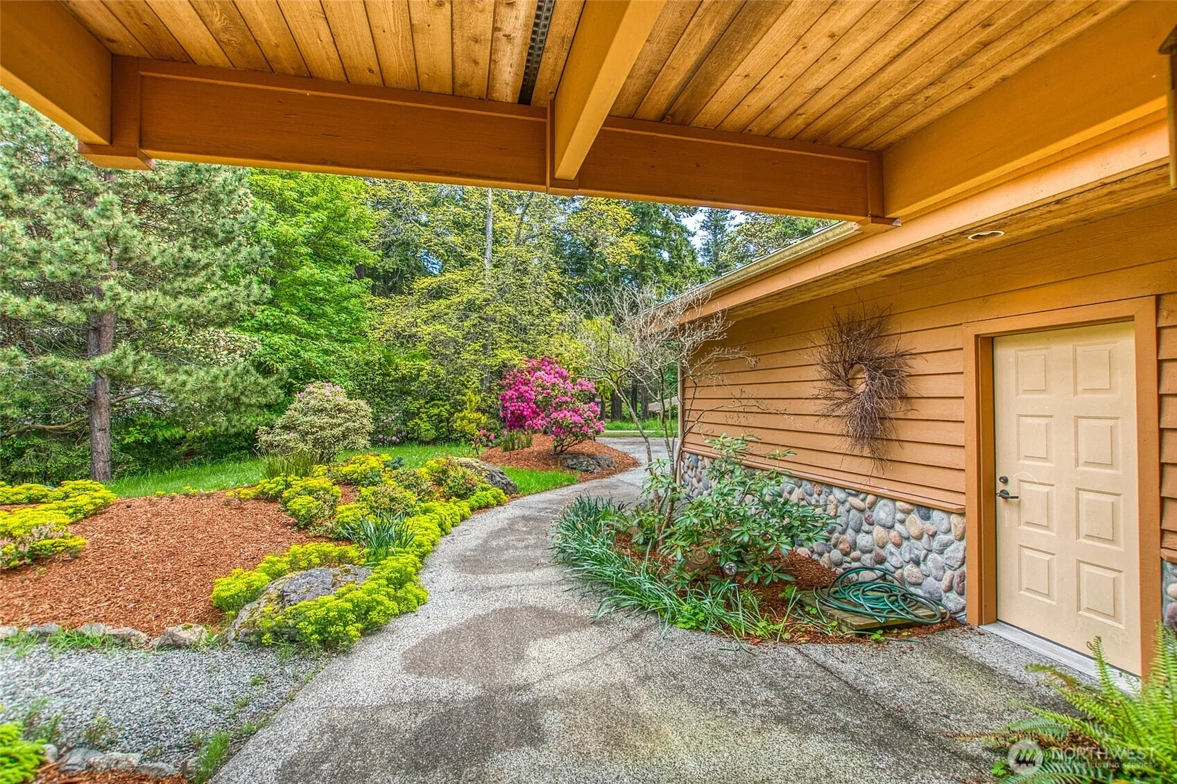 Perched on a hillside with west-facing views over the Sound, this beautifully crafted Lindal Cedar Home radiates warmth, tranquility, and timeless Northwest style. Designed to harmonize with the landscape, it features vaulted pine ceilings, natural cedar finishes, granite tile, maple floors, alder cabinetry, and stone gas fireplace that adds to the home’s rustic elegance. Stainless steel kitchen appliances and an expansive deck are ideal for sunset dinners or stargazing under island skies. Bringing the outdoors in, this light-filled, thoughtfully designed home has two bedrooms, a loft space, and 3 full baths. Surrounded by low-maintenance landscaping, it’s fully furnished and move-in-ready –perfect for a creative hideaway or island home.