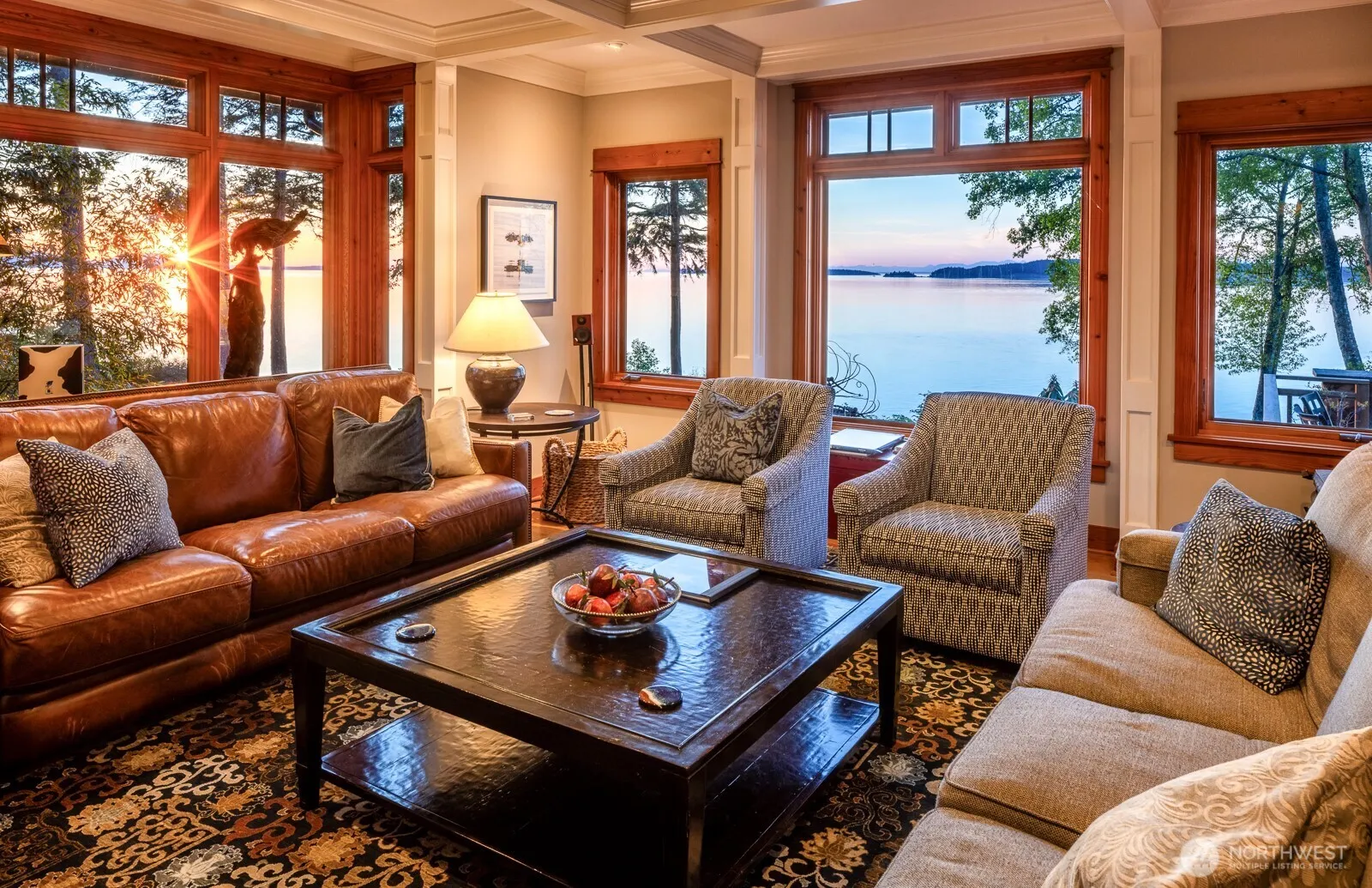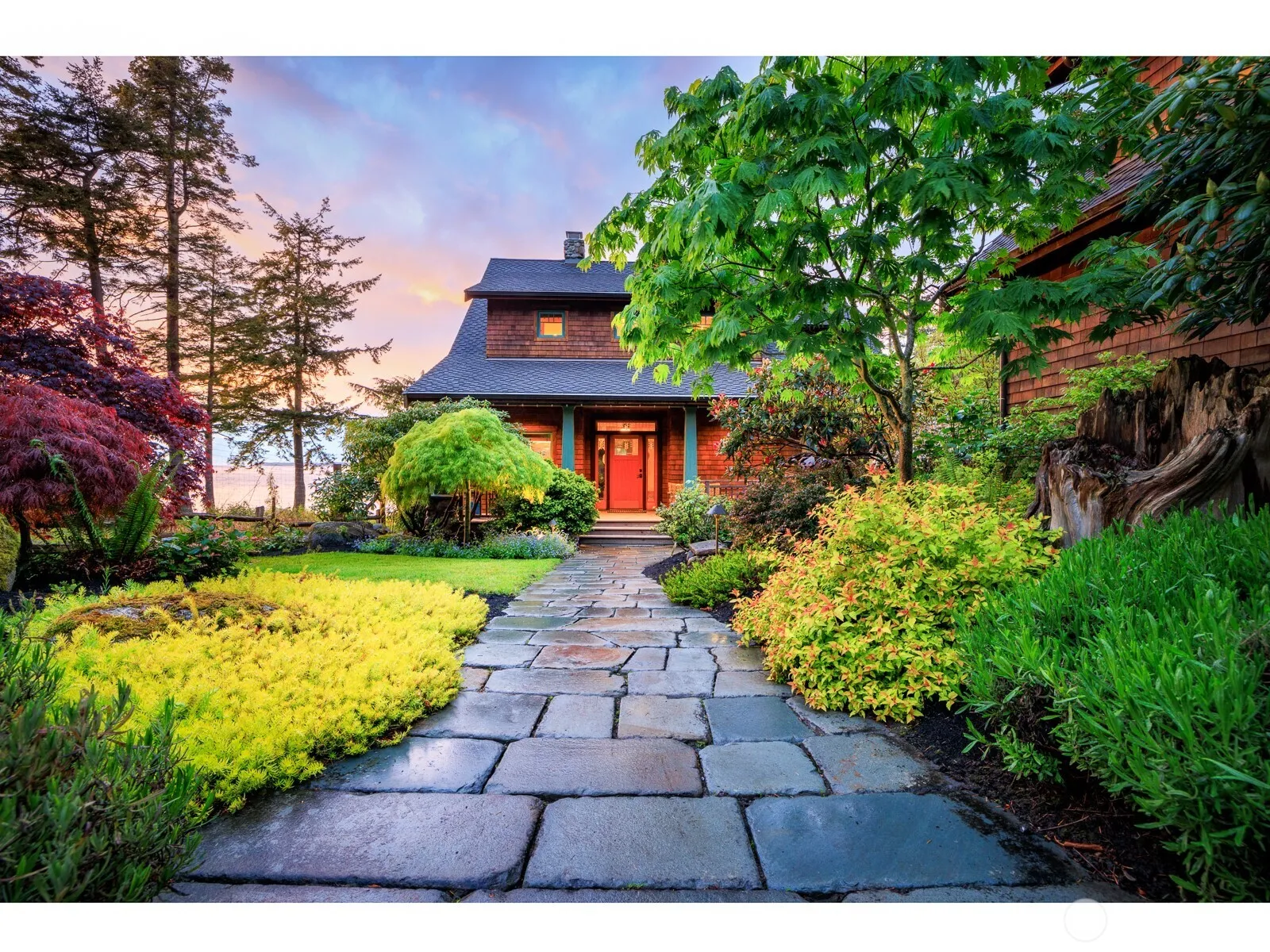 Timeless Waterfront Island Classic. As you drive through the gated entry, down the paved driveway, the park-like landscaping creates a sense of arrival. Built by Premier Builder, Burke Thomas, the quality and craftsmanship throughout all of the buildings is top-notch. With views from every room in the main house, the connection to the water resonates throughout. 3 BD, each fitting king beds create comfortable spaces for guests. The primary suite, w/ adjoining bath updated by Delgarno Construction is a sanctuary of its own. The bunk house has everything: 3/4 tiled bath, washer/dryer, gas fireplace, patio & privacy from the main house. Above the large 2 car garage is a bonus/game area. Entire property is active vacation rental.