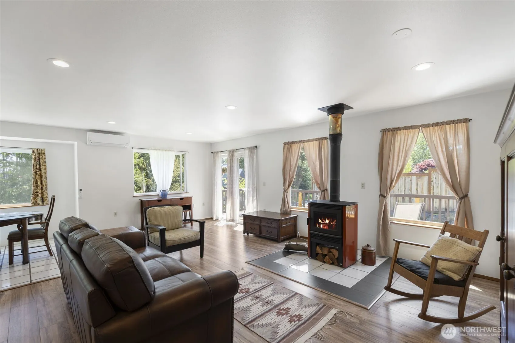 Enjoy one-level living in this light-filled home, ideally located just minutes from North Beach Park, Fort Worden, and Cappy’s Trails. This lovingly maintained 3-bedroom, 2-bath home offers an open and inviting floor plan with thoughtful upgrades throughout, including new appliances and energy-efficient mini splits for year-round comfort. The spacious living room features a cozy newer wood stove, perfect for chilly evenings. Step out onto the sunny, south-facing back deck—ideal for entertaining or unwinding in peace and quiet. The primary suite includes sliding doors that open directly to the deck, creating a seamless indoor-outdoor connection. A two-car garage adds convenience to this sweet home. Come see for yourself!
