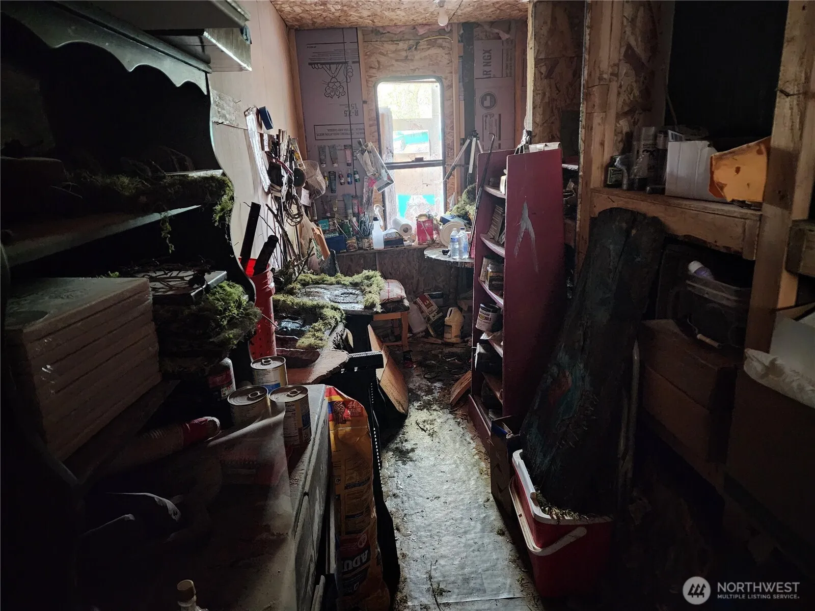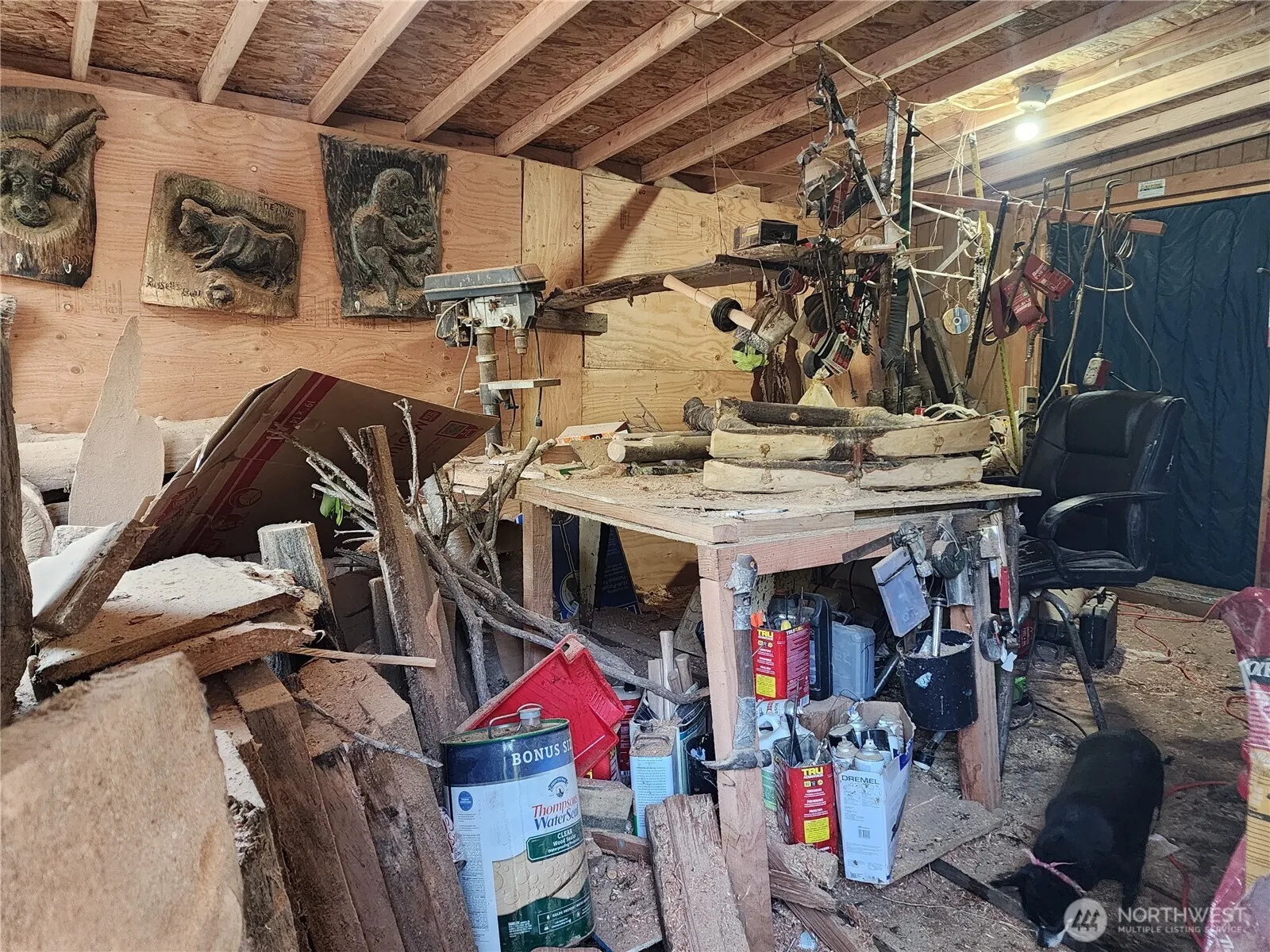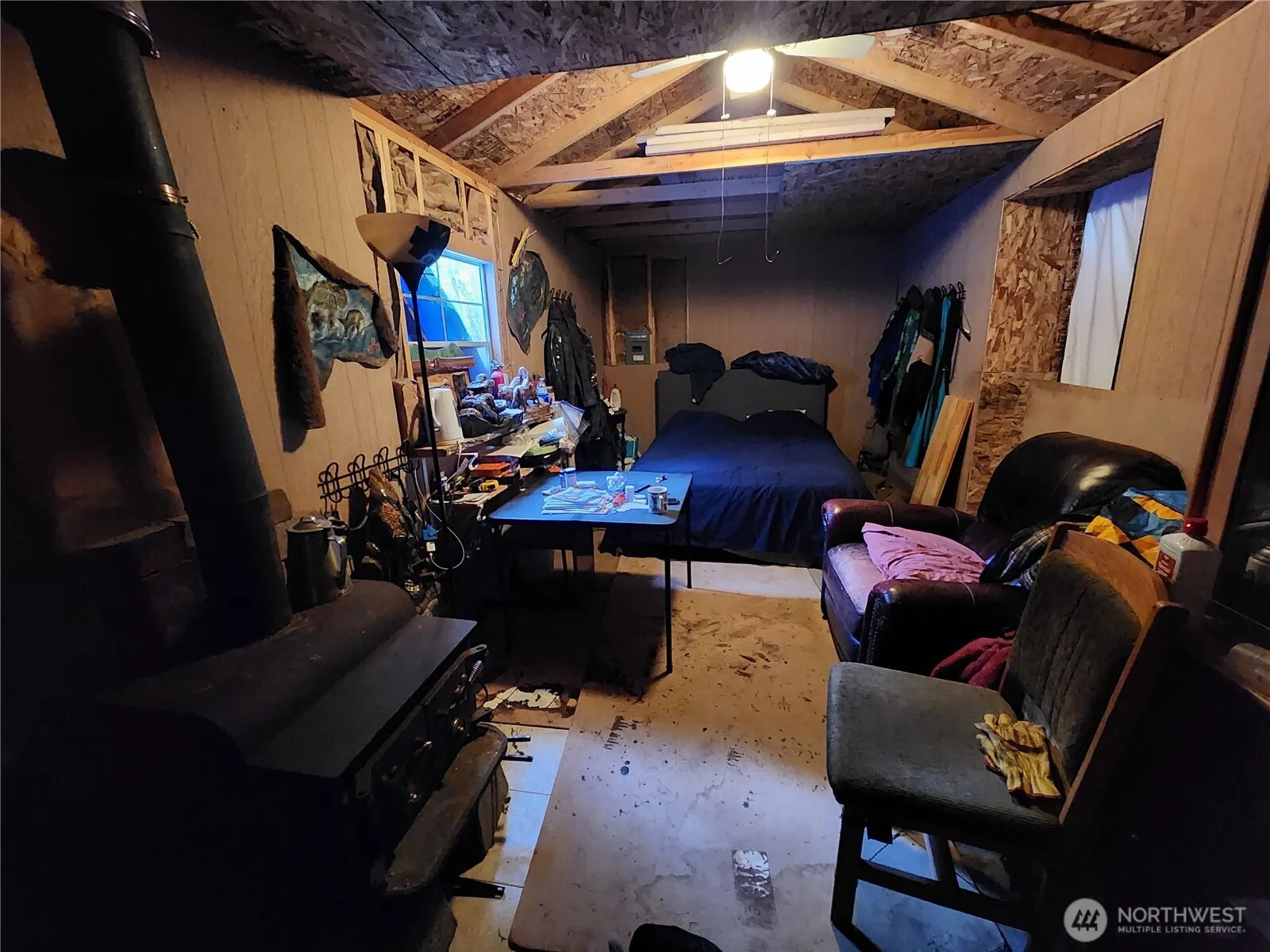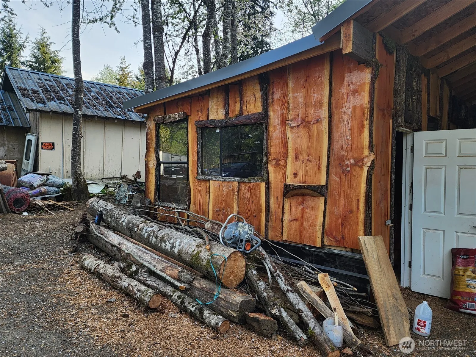 This unique .52 acre parcel site back off of Highway 12 and is surrounded by territorial mountain views. At the end of a dead end gravel road, partially fenced. Former house is now storage. Work room is being used for wood/metal carving artwork, converted shed with fireplace is a bedroom, other converted shed is large storage/pantry. Well is on corner of property needs work, old septic system needs replaced. Propane tank is leased. Some building material and artwork will transfer with sale. Property sold as-is.