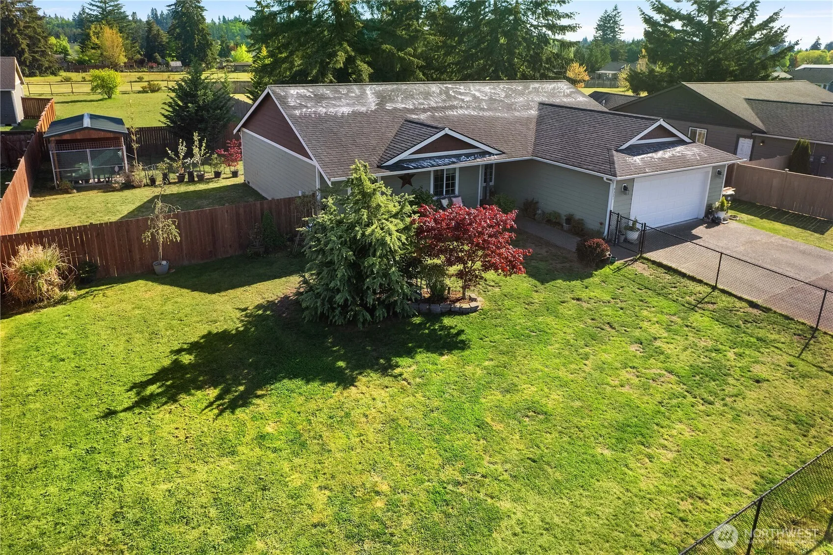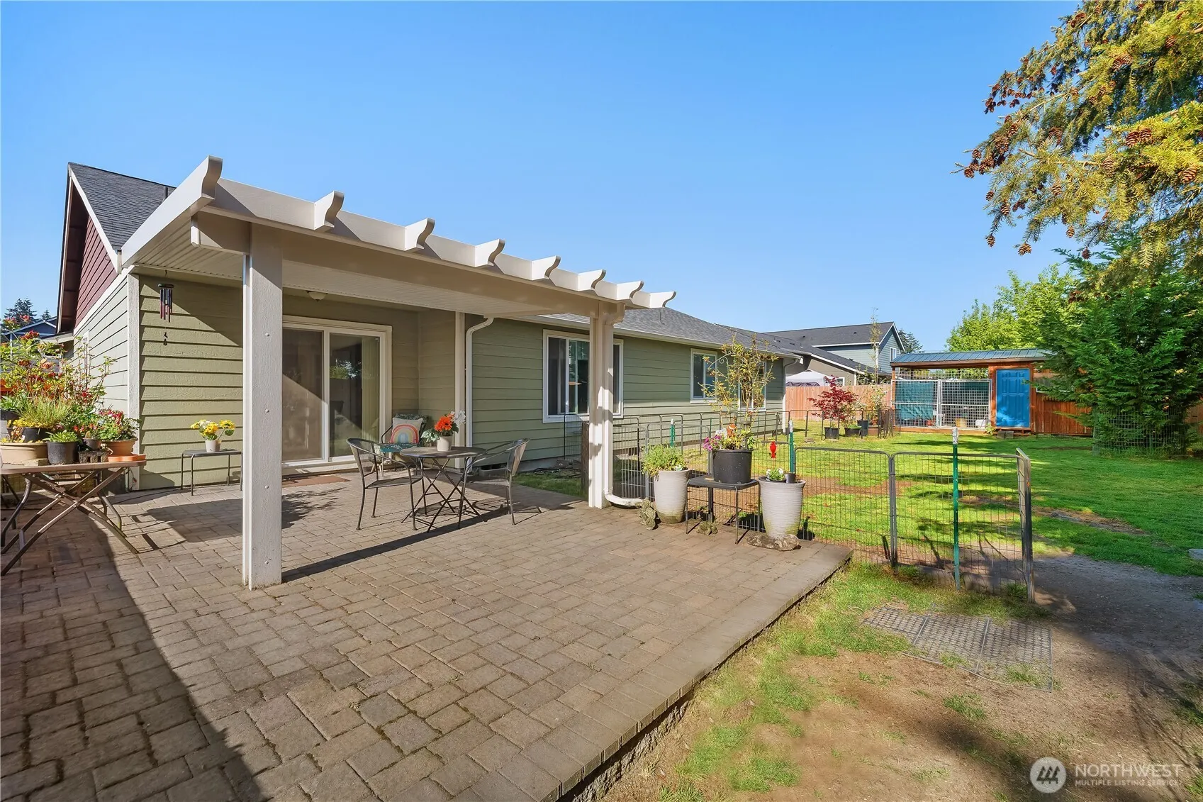 Seller offering $15,000 in buyer credits—move in w/ more money in your pocket! Open FLR PLAN, WELL MAINTAINED w/ LED can lighting & sizable bedrms. The primary suite incl a 5-piece bth w/ a large soaking tub. Kitchen w/ stainless appliances, granite counters, & quality cabinetry. Stylish fixtures. Heat pump w/ A/C offers year-round comfort. Charming covered front porch, exposed aggregate driveway, & a newly added covered back patio w/ natural stone-paved extension—ideal for outdoor living and separately fenced front & back yard w/ a dog run & an insulated room to keep them warm. Carpets to be prof. cleaned before closing. No HOA! Close to I-5 for an easy commute to Oly or Centralia. Home warranty incl. Pet Perfect! Pre-inspection complete.
